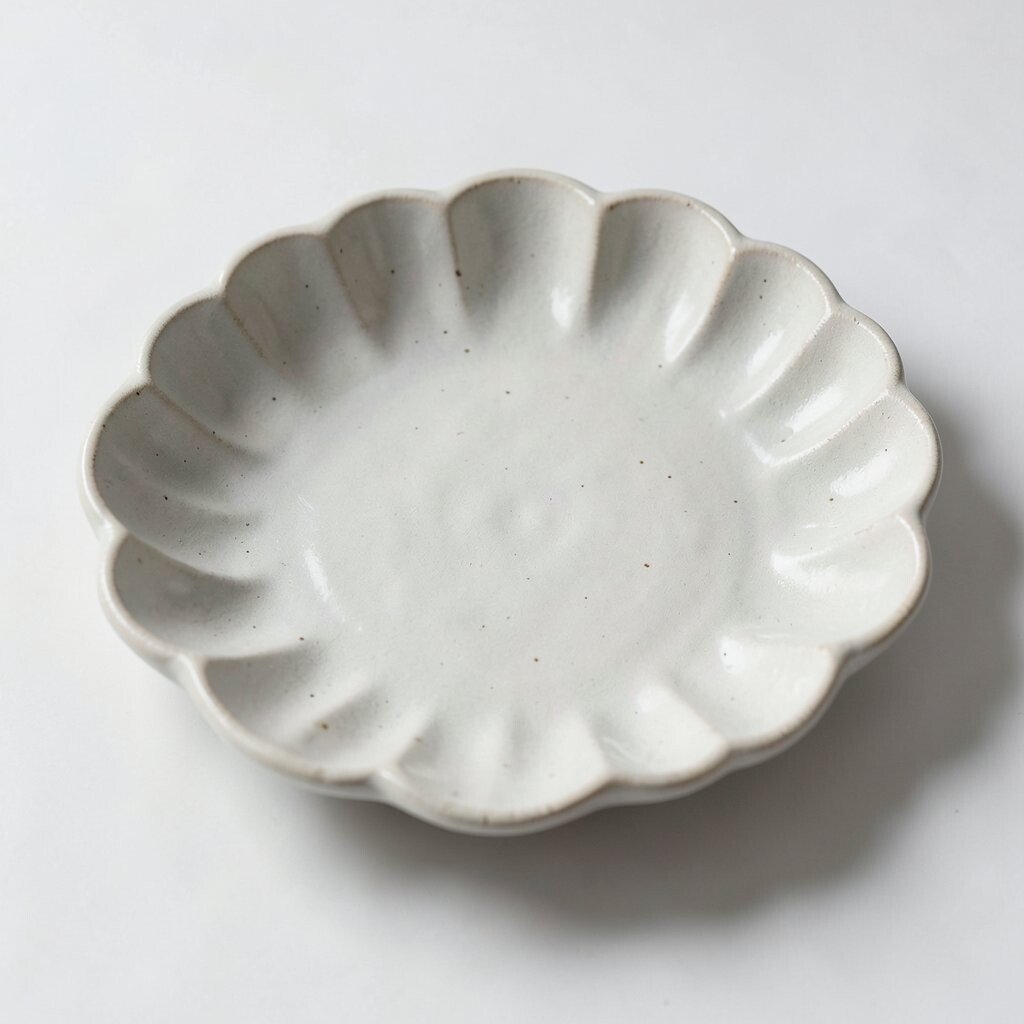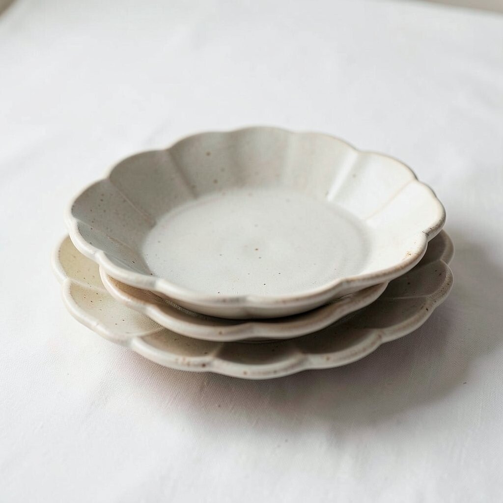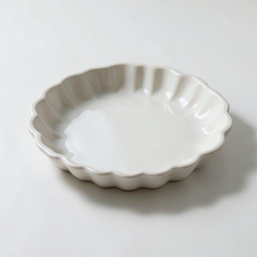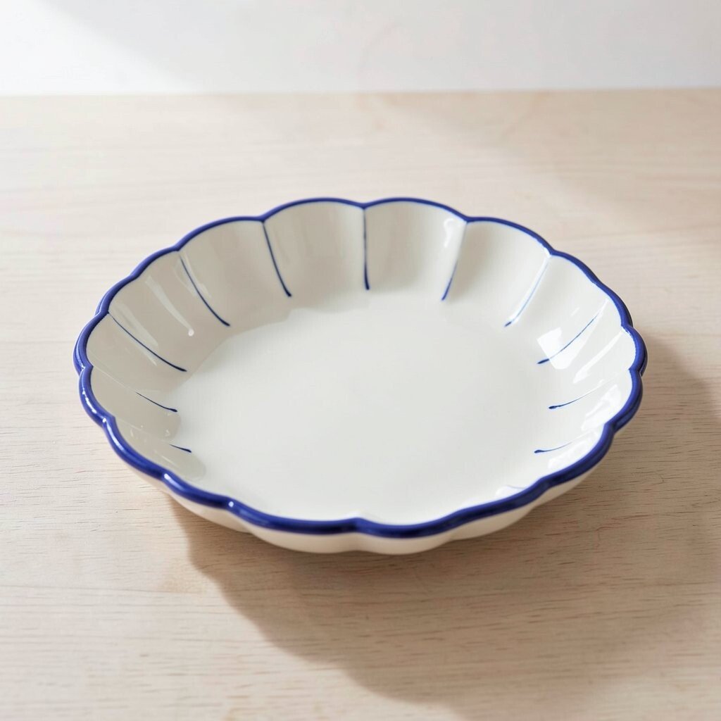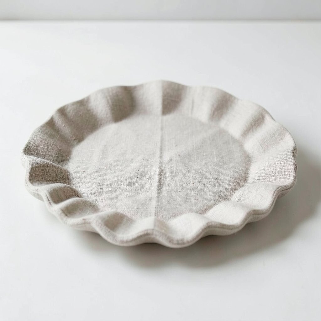 A stoneware tray with scalloped edges offers a rustic charm. Its earthy tones and textured surface add warmth to your decor.