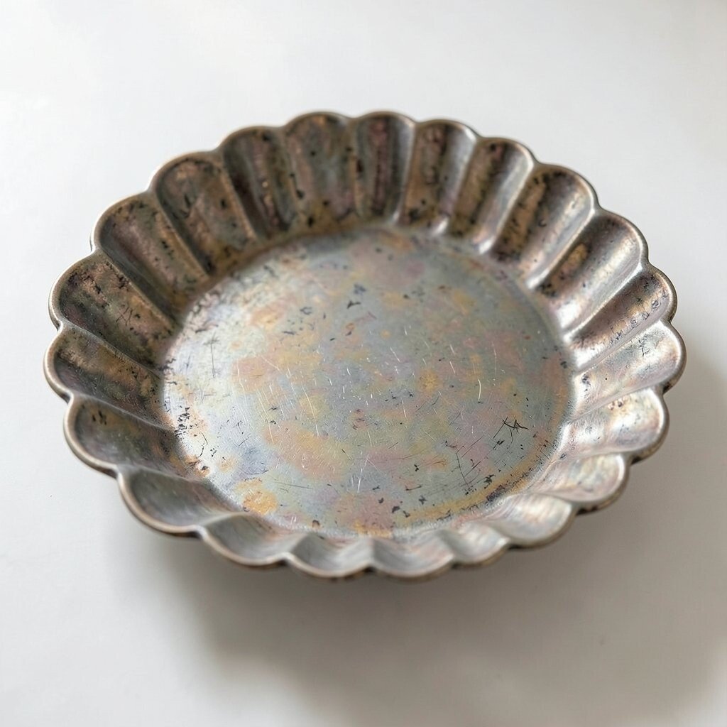 Picture a sleek and shiny metal tray with scalloped edges. It gleams under the light, adding sparkle to your space.