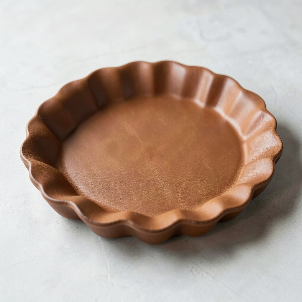 A leather tray with scalloped details offers a luxurious touch. It feels soft to the touch yet is incredibly durable.