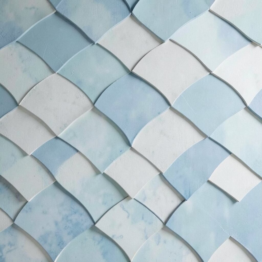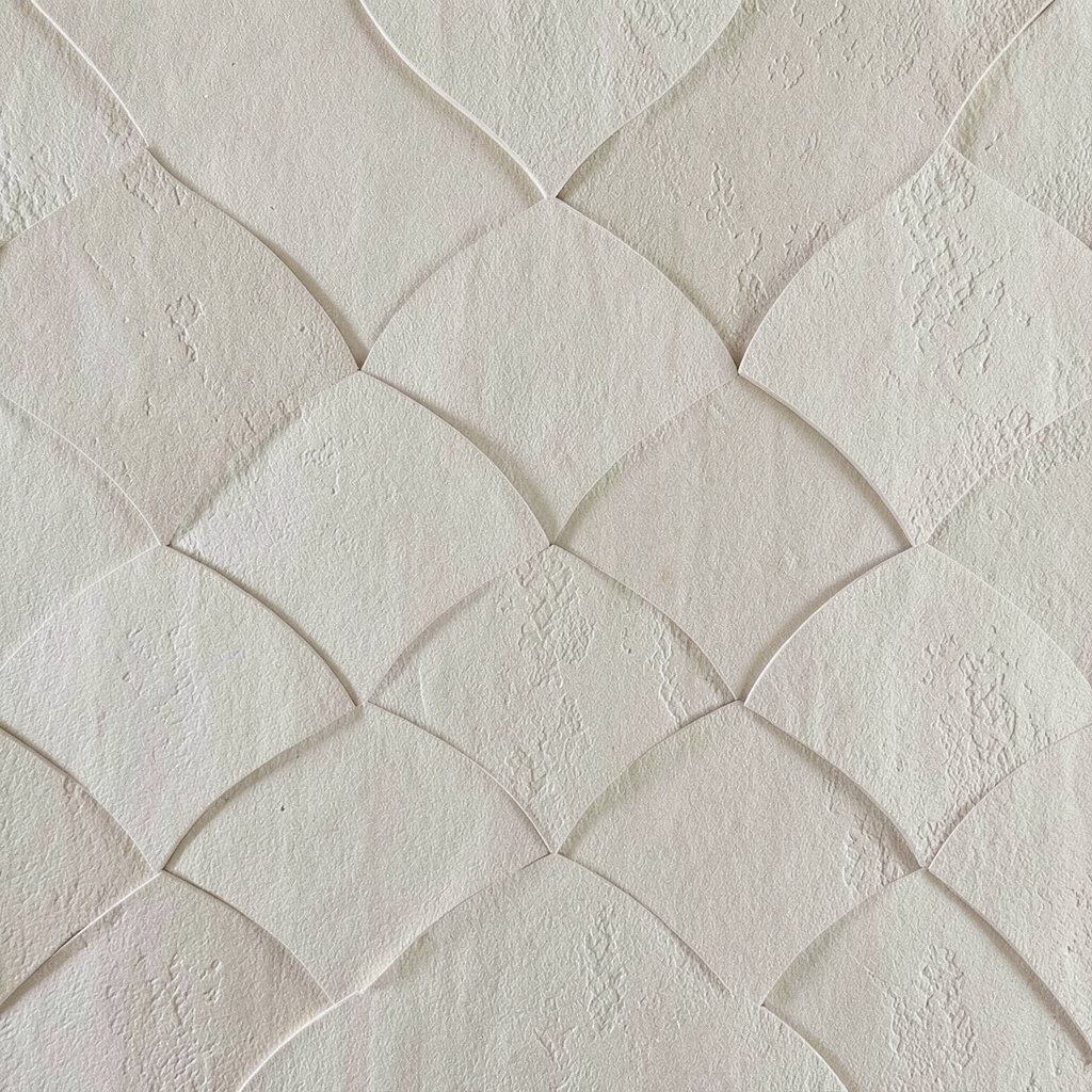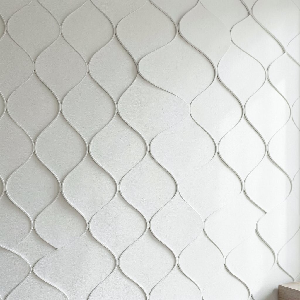 Perfect for a feature wall, these scallops can draw the eye without overwhelming the space. Pair with simple, sleek furniture to maintain a clean aesthetic. The monochrome palette offers endless decorating possibilities.
