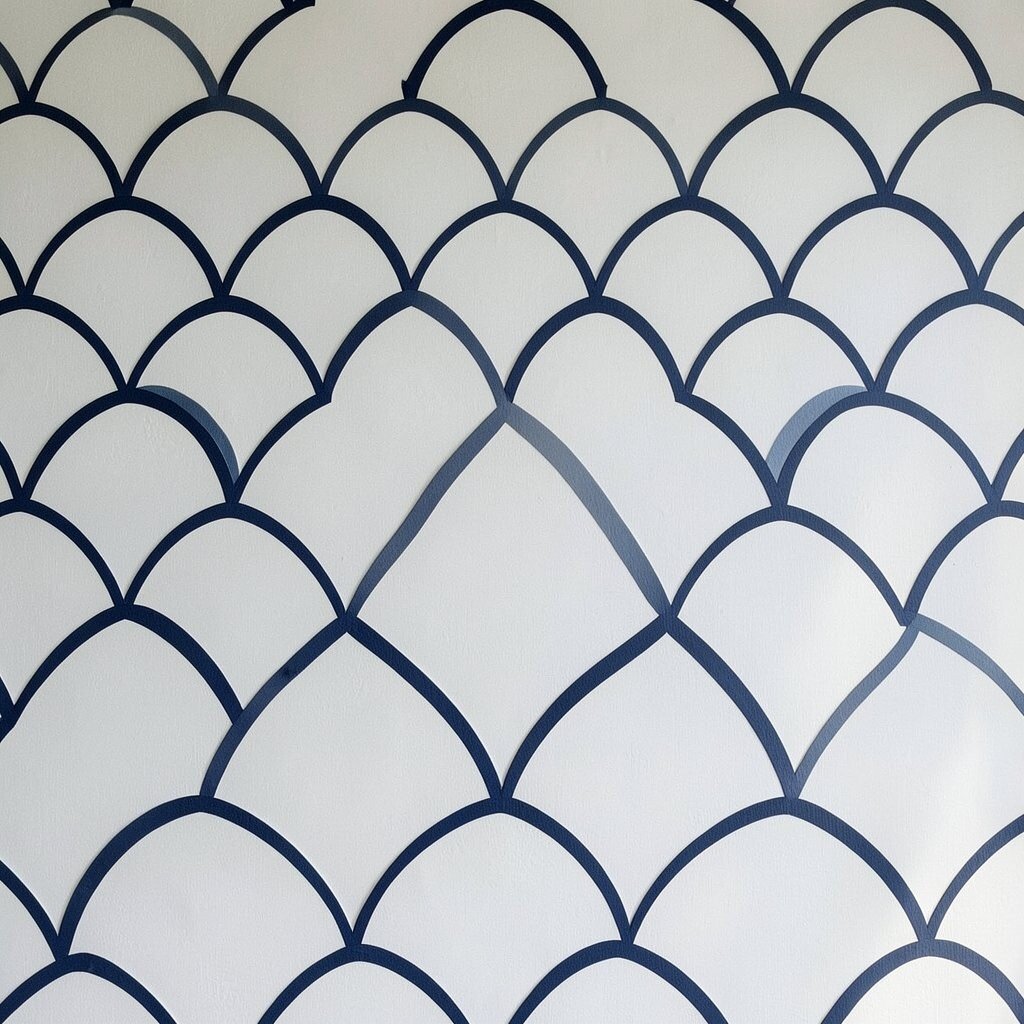 Navy scalloped wallpaper offers a sophisticated and calming effect. It pairs beautifully with white or gold accents.