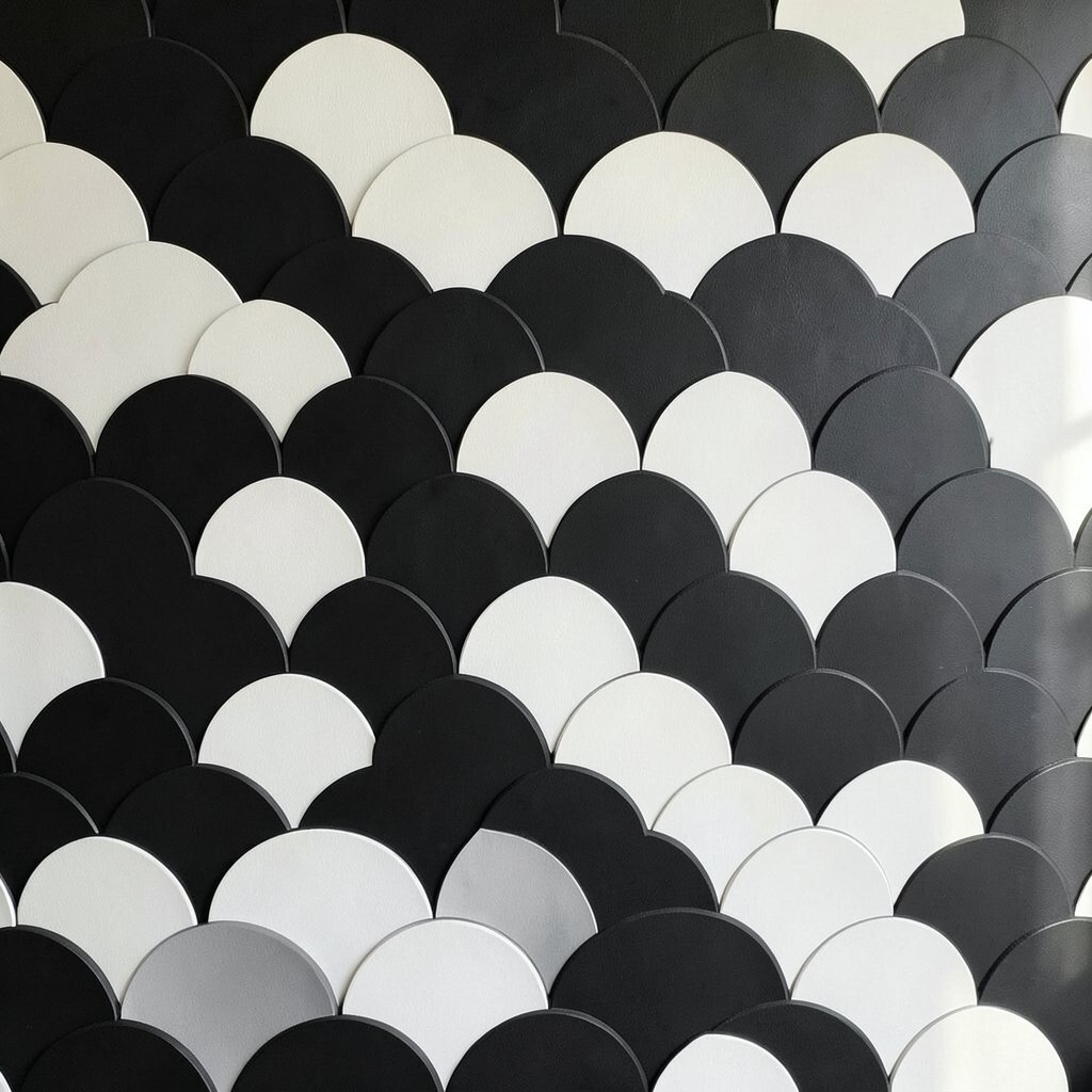 Black and white scallops create a striking and modern look. This high-contrast design can make a bold statement in any room.