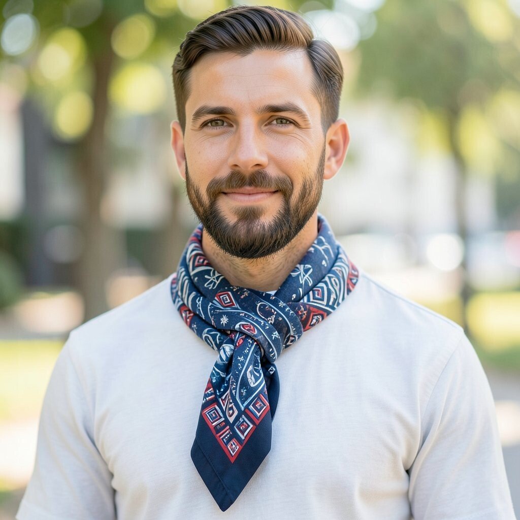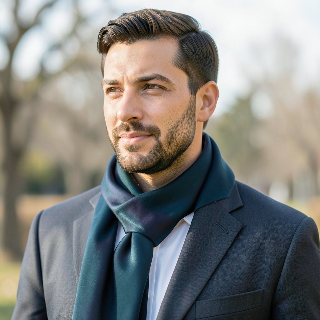 This smaller scarf works best with open collars, light jackets, and smart casual outfits. Choose silk, cotton, or a soft blend, and keep the knot small so it looks clean. It is also a nice low-cost way to add style without wearing a full winter scarf.