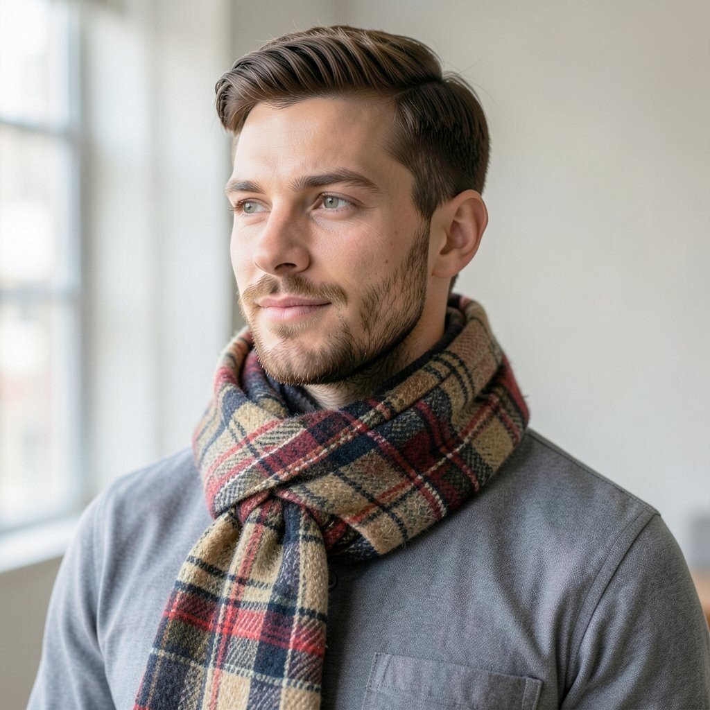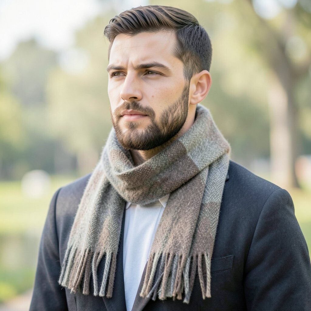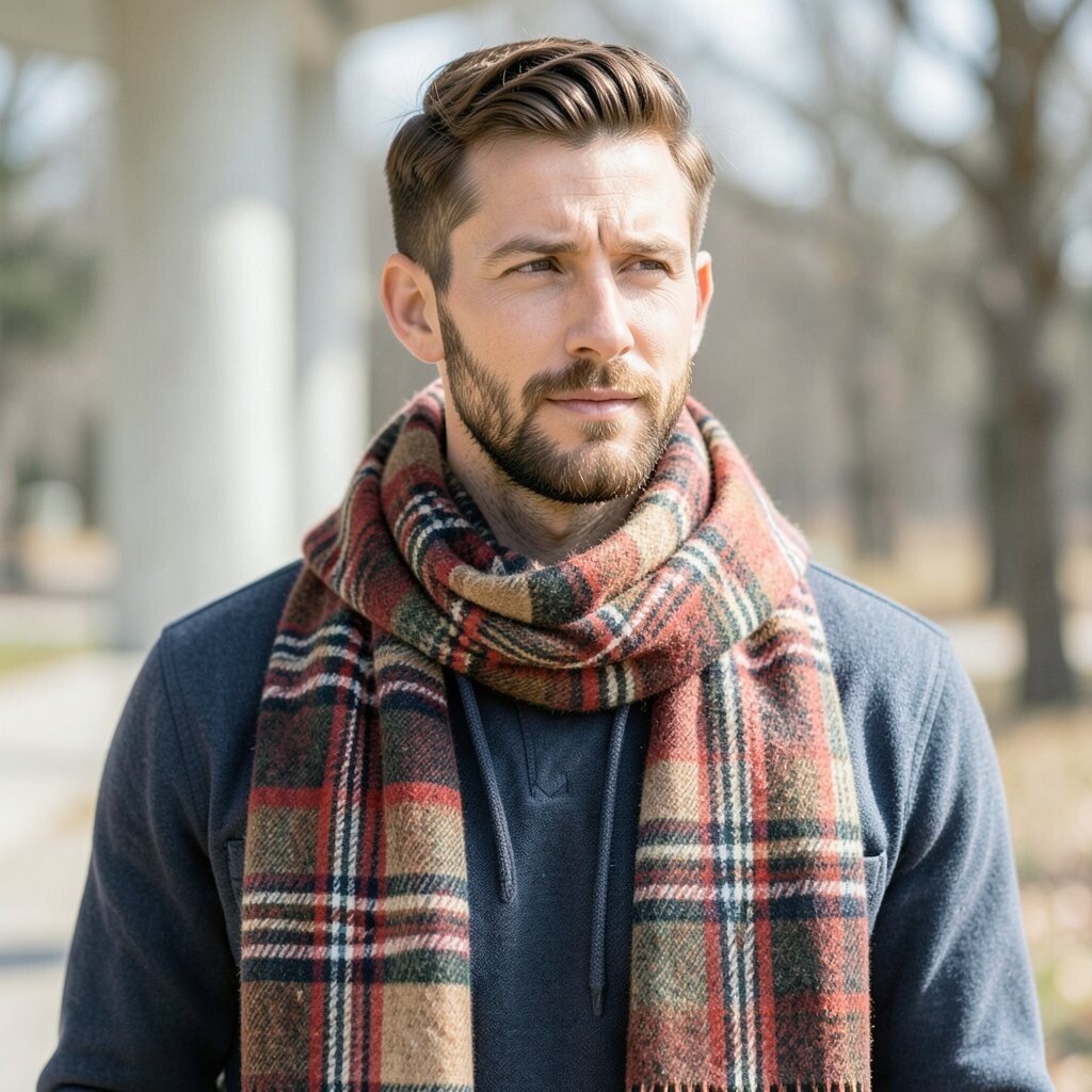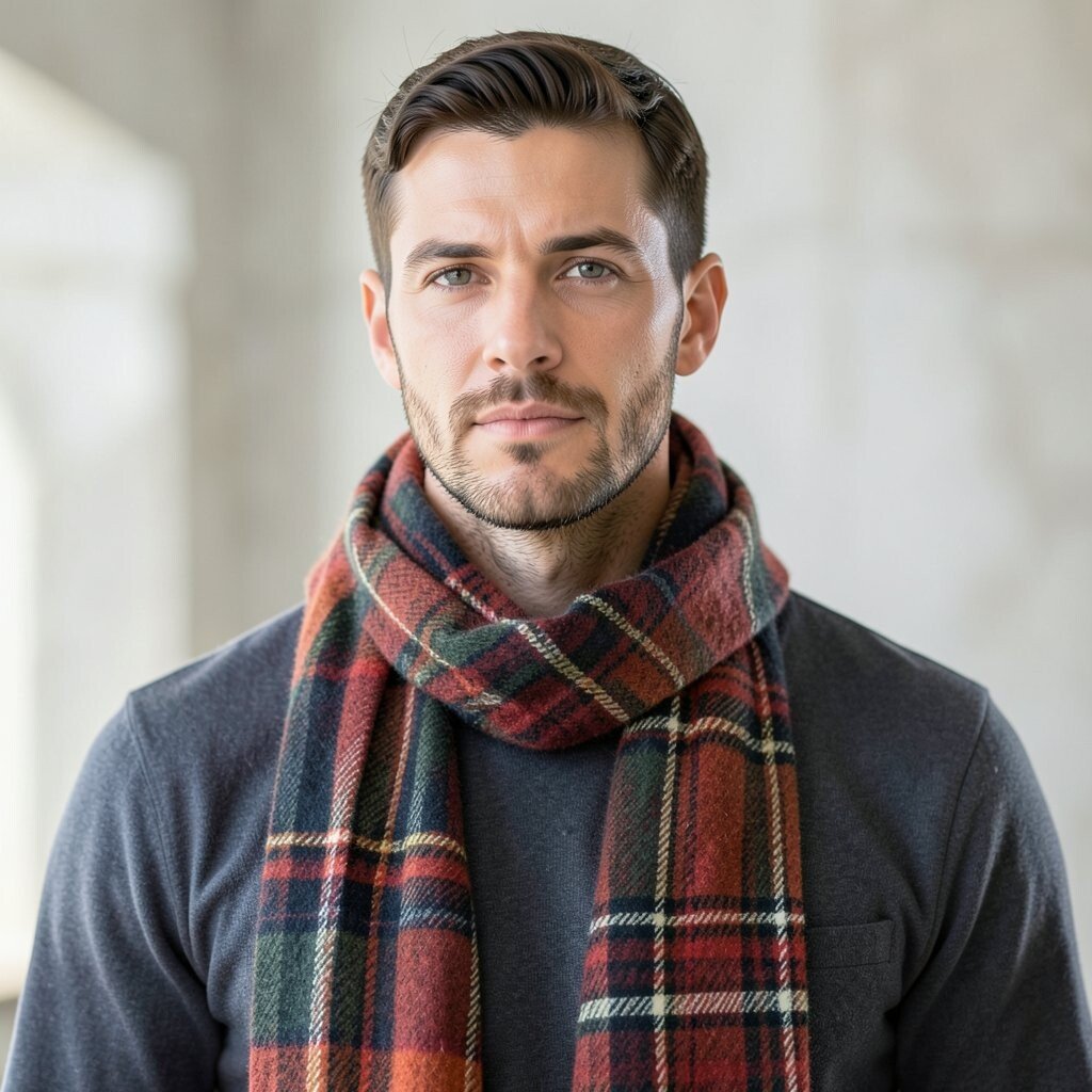 This pattern works well with dark coats and simple sweaters. Choose a tartan with deep red, green, or navy for a rich look, and keep the rest of the outfit calm so the pattern can shine. Tartan scarves can range from low cost to premium, depending on the fabric and finish.
