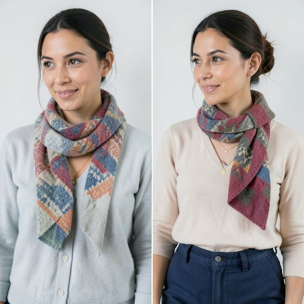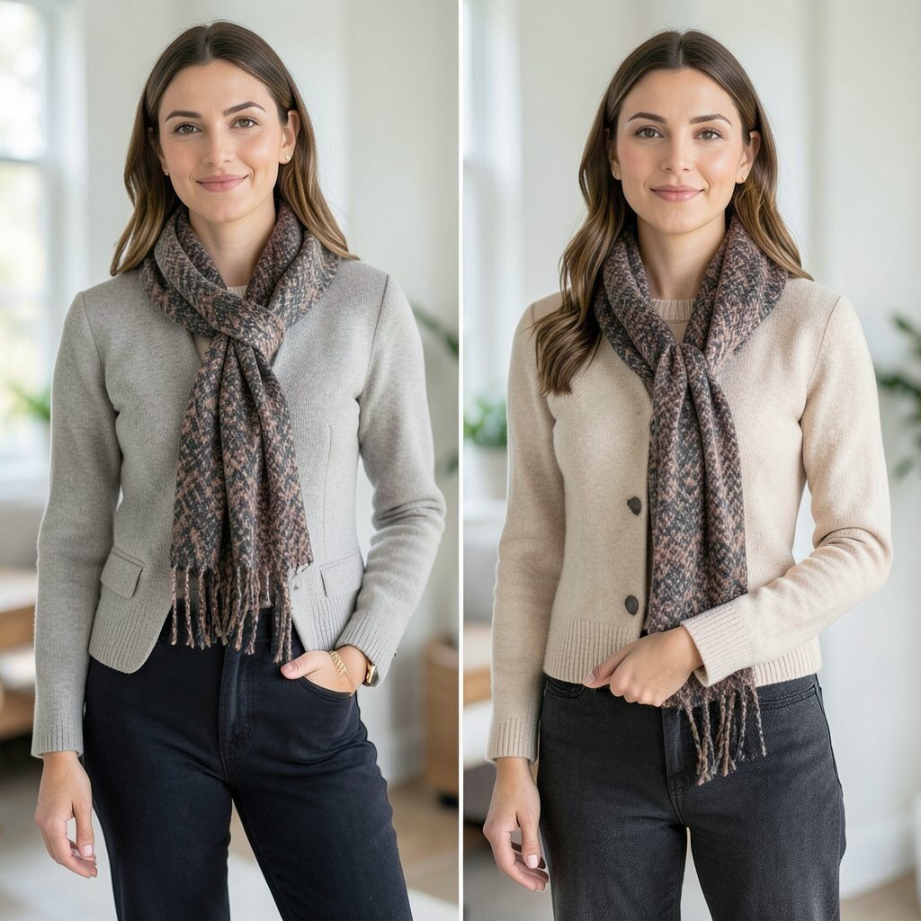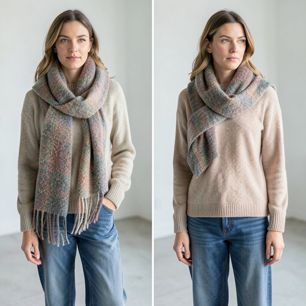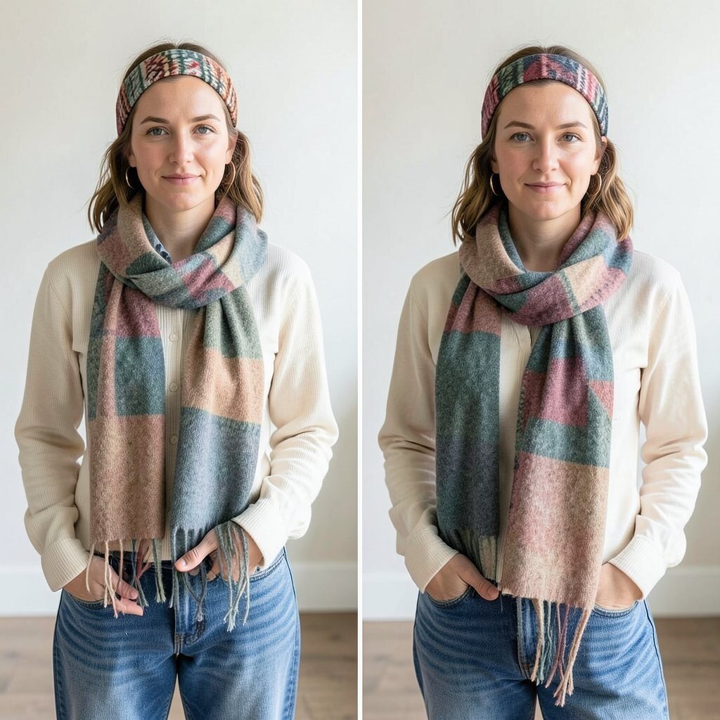 Choose scarves in complementary colors or patterns for a cohesive look. It’s a creative way to add depth and style to your ensemble.