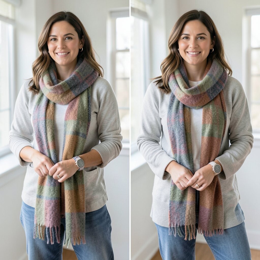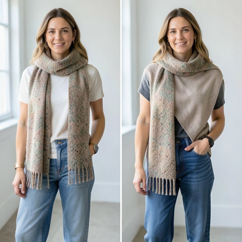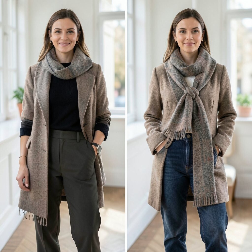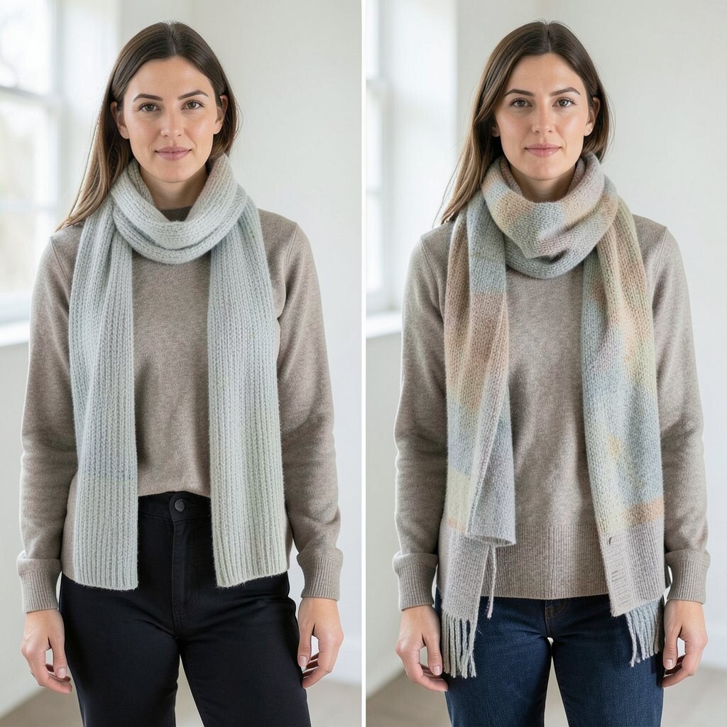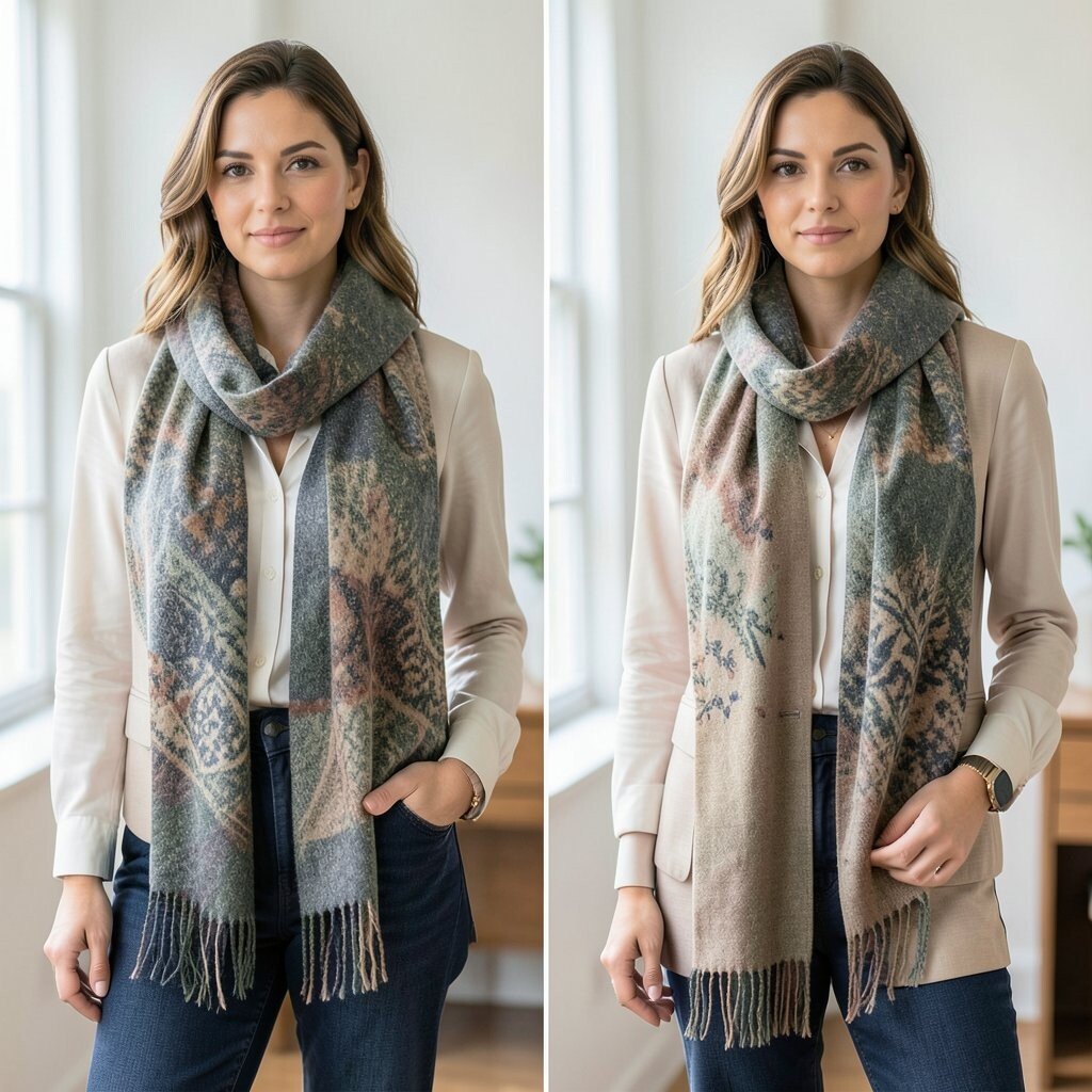 Choose scarves in complementary colors or patterns for a cohesive look. It’s a creative way to add depth and style to your ensemble.