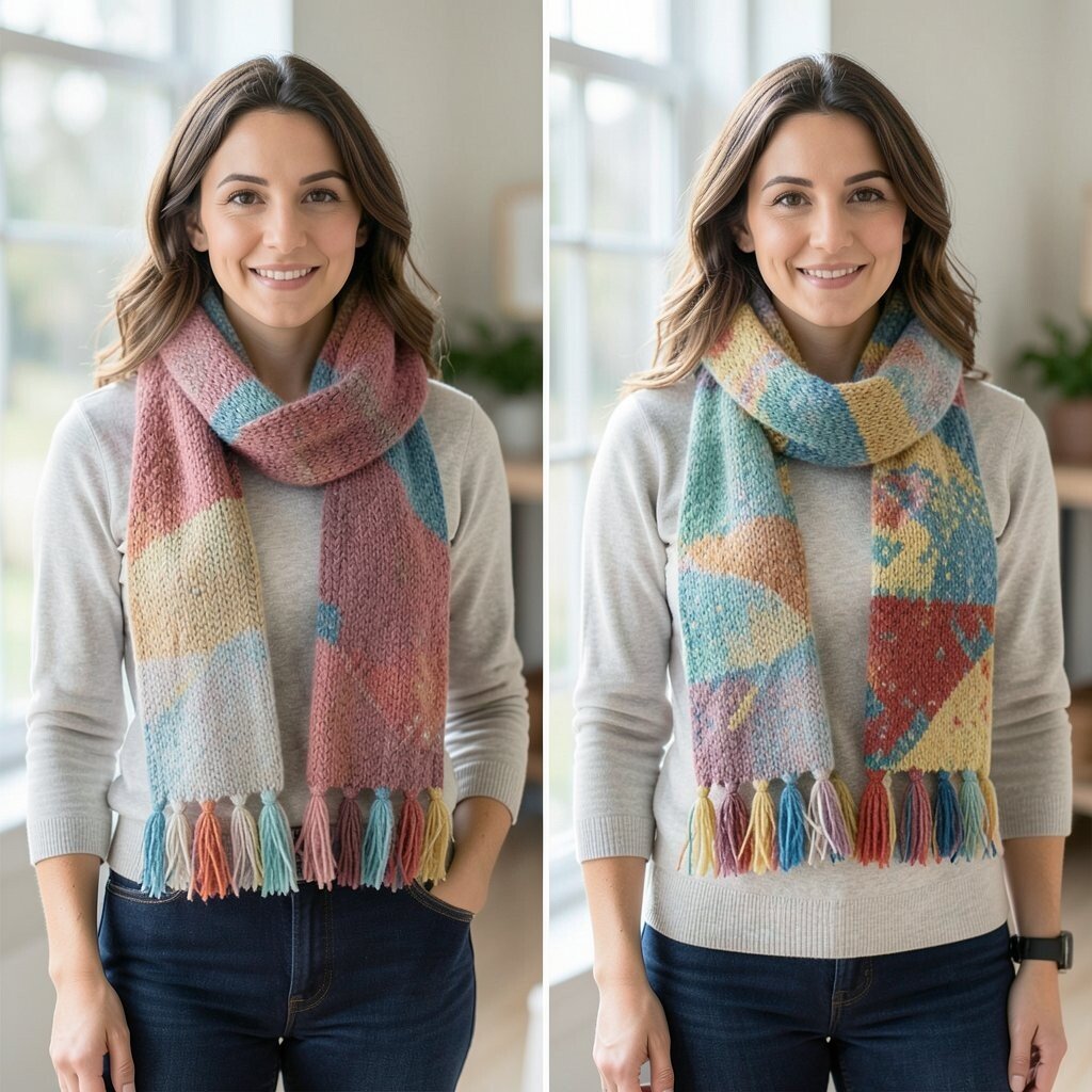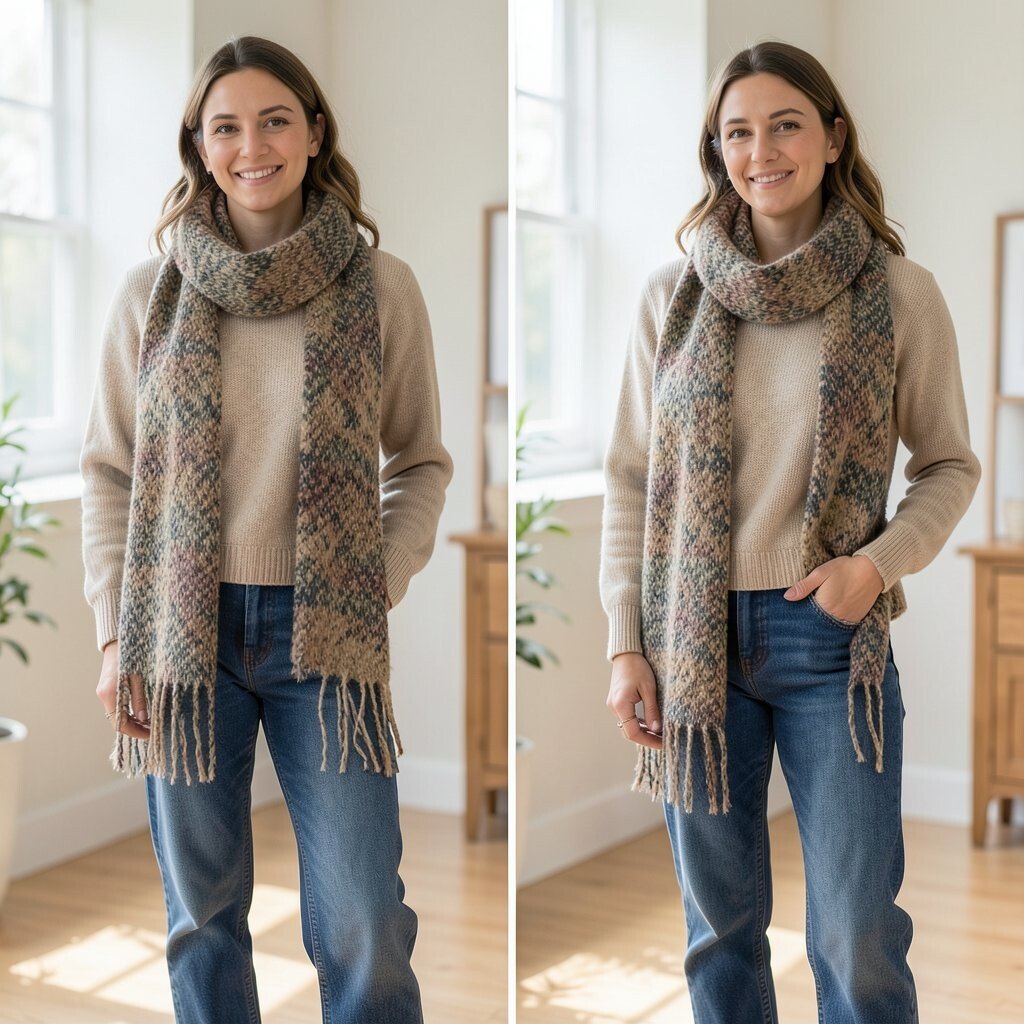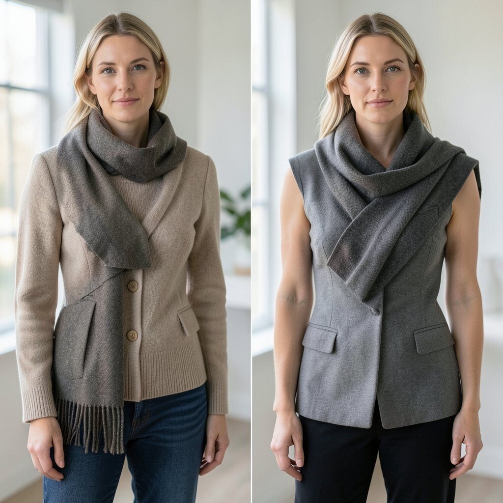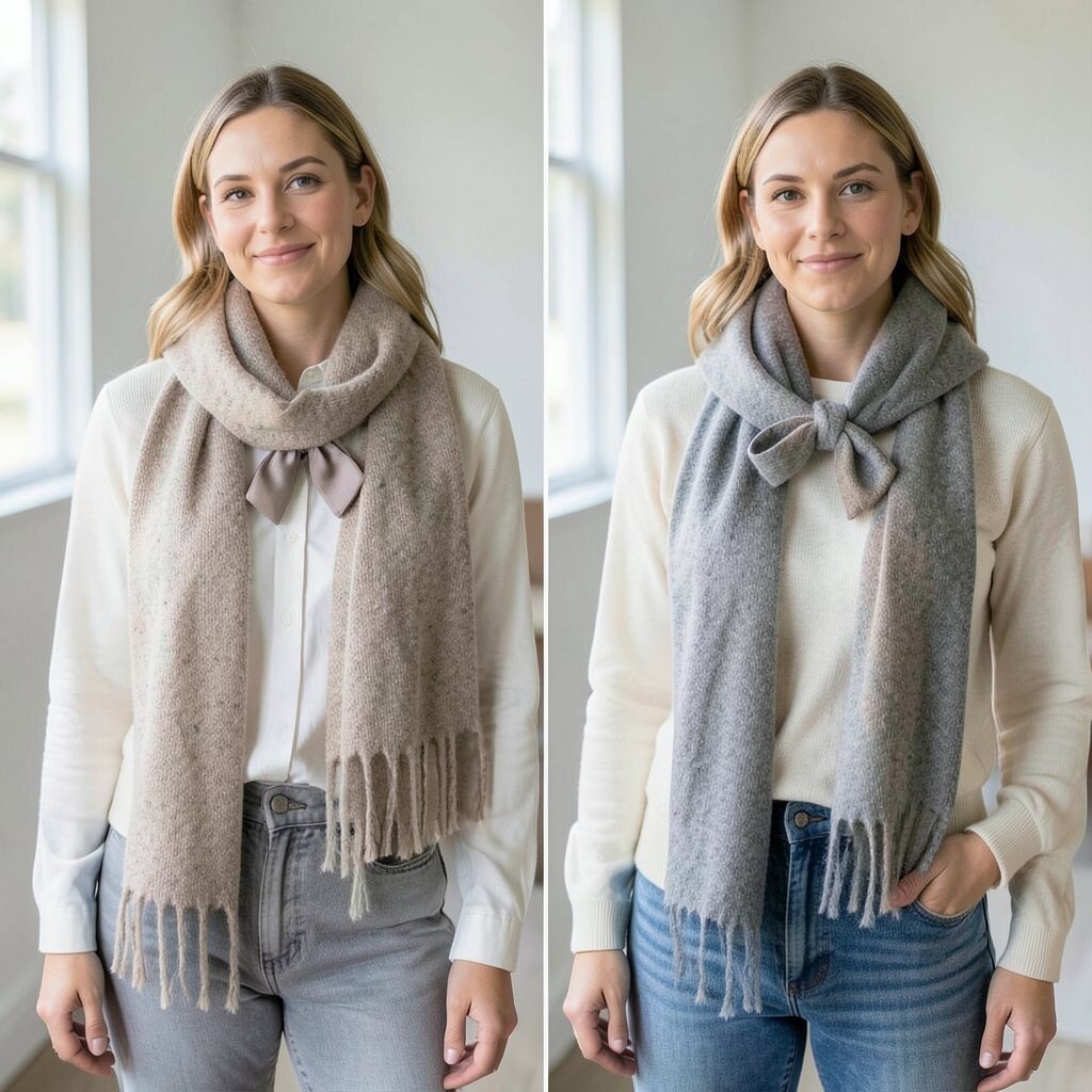 Choose scarves in complementary colors or patterns for a cohesive look. It’s a creative way to add depth and style to your ensemble.