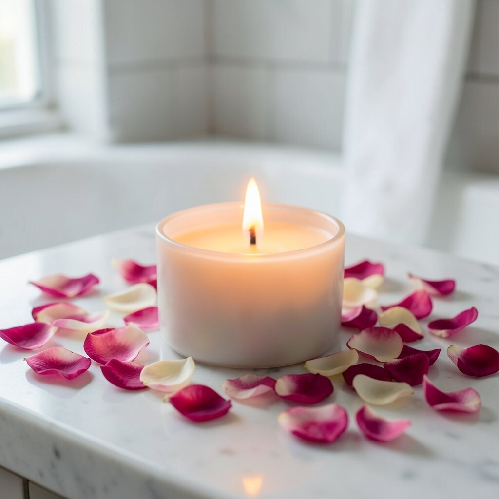 Rose candles add a soft floral scent that feels sweet and gentle. Their pink or blush color can make bath time look pretty and tender.