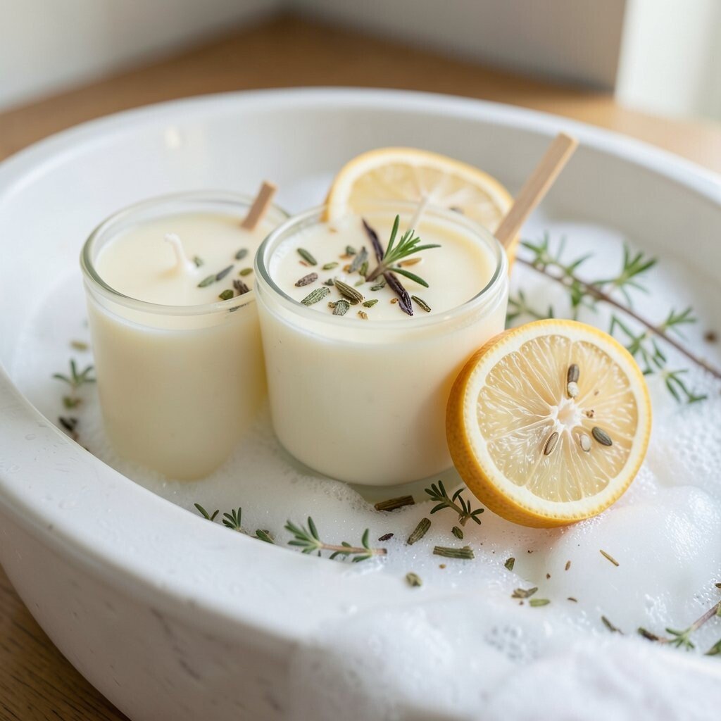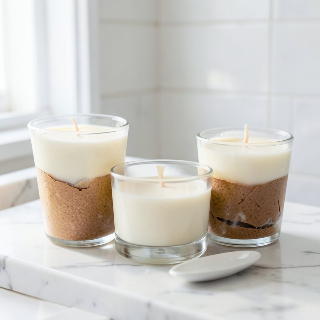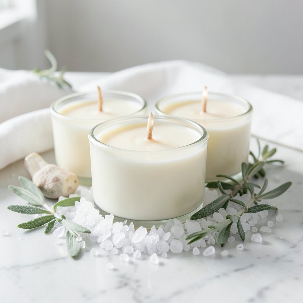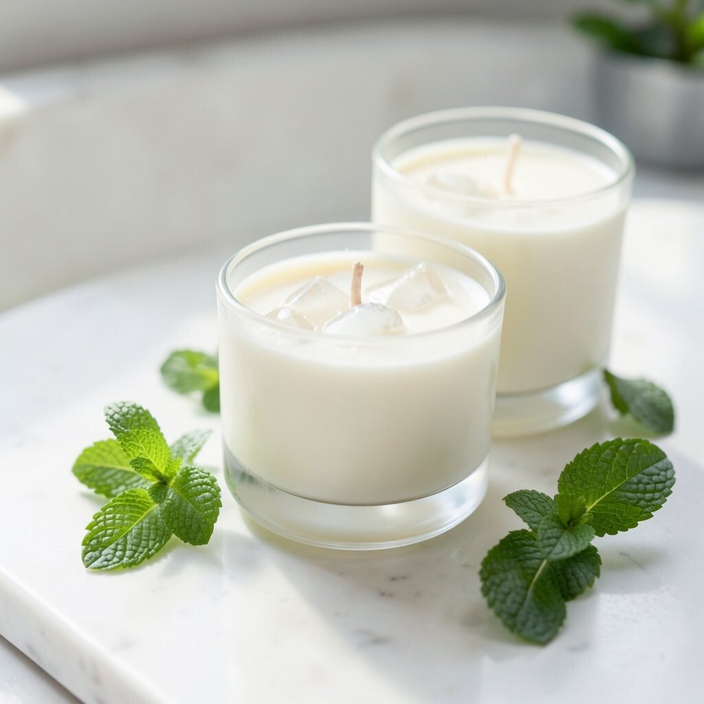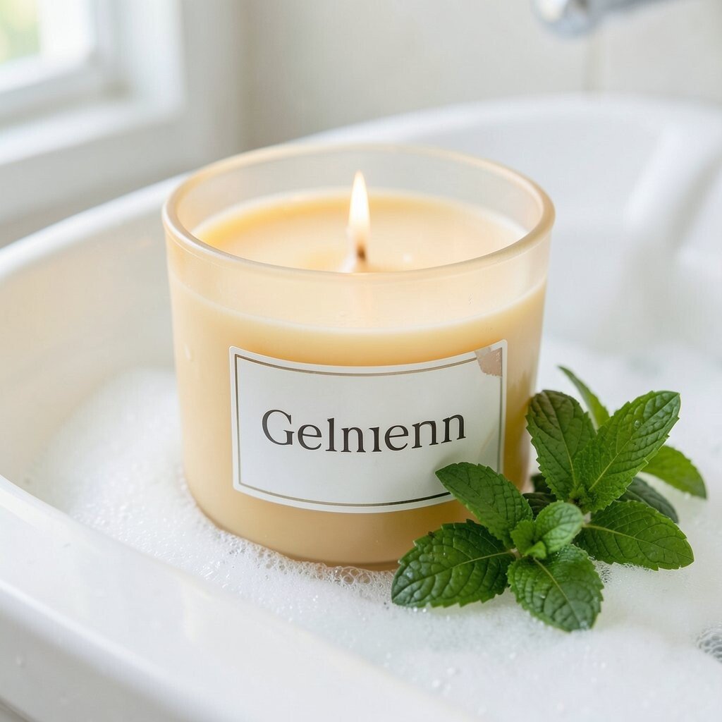 Herbal tea candles often smell like chamomile, mint, or soft green herbs. Their gentle look can make the bath area feel quiet and natural.