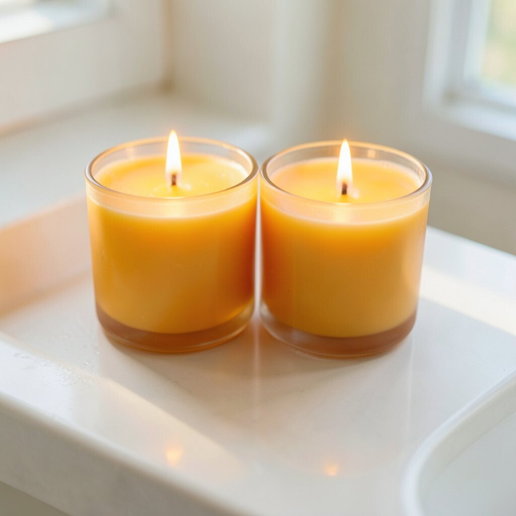 Amber candles bring a warm, smooth scent that feels deep and soft. The golden flame and honey-colored wax can make a bathroom glow like sunset.