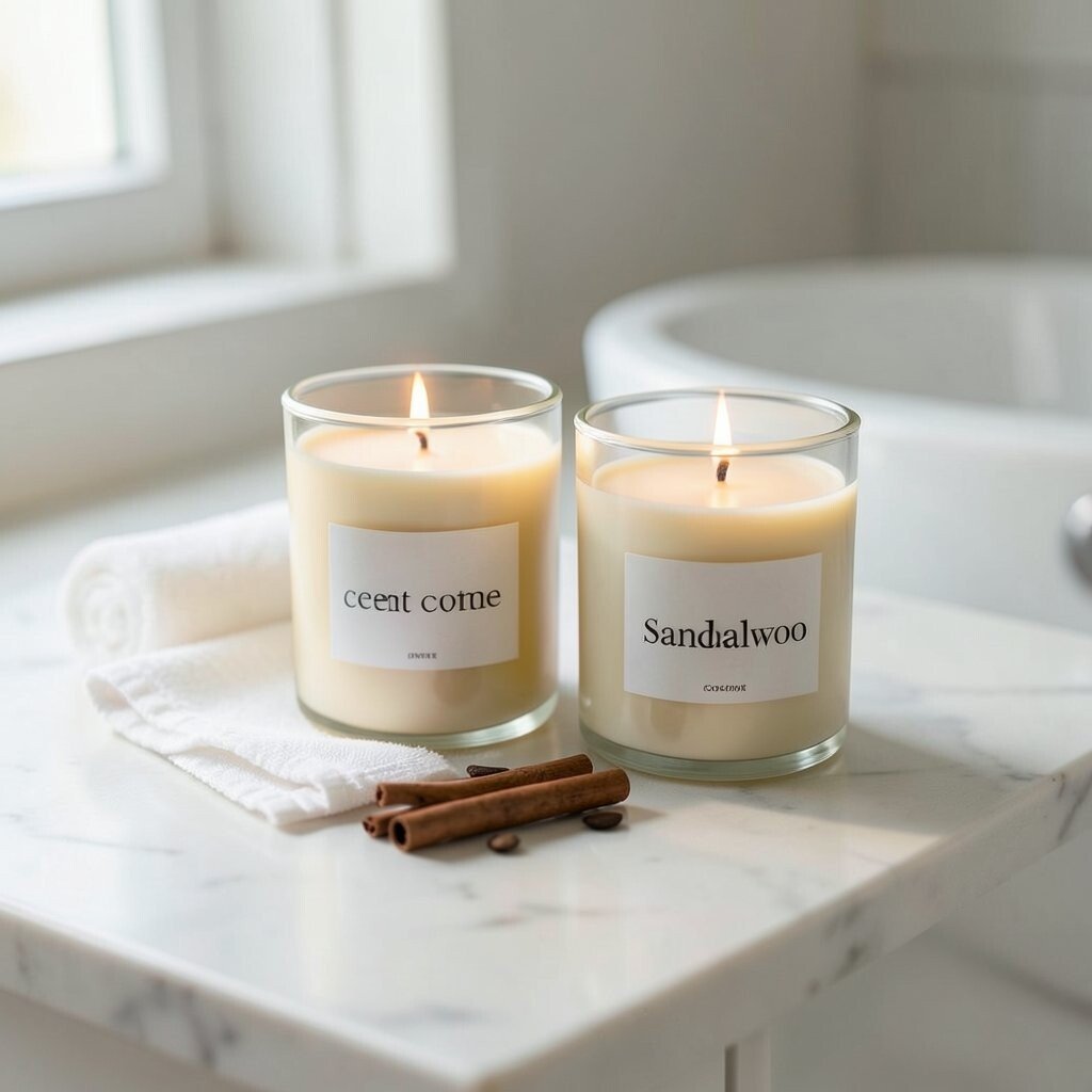 Sandalwood candles bring a soft, woodsy scent that feels warm and steady. The rich amber light from the flame can make a bath corner look deep and cozy.