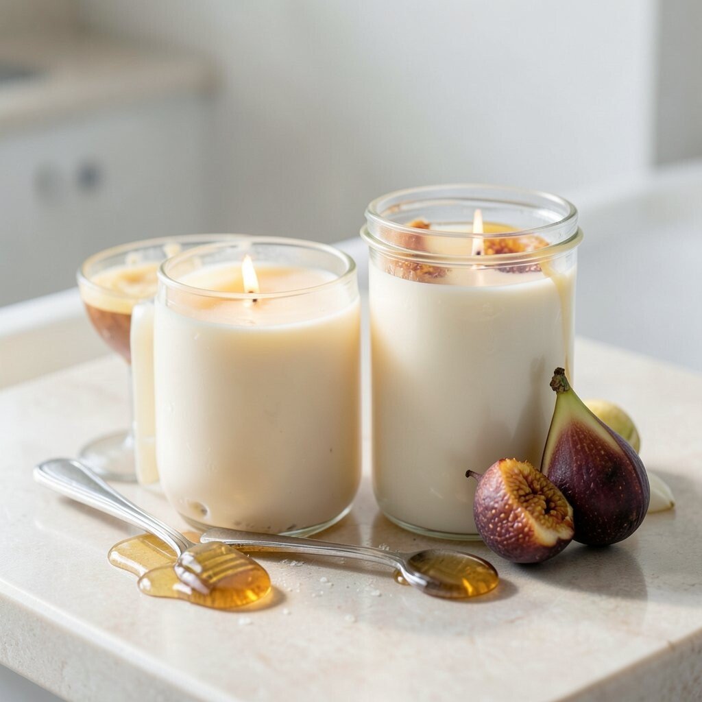 Fig and honey candles smell soft, sweet, and a little earthy. Their deep purple or golden wax can look rich and pretty on a bath shelf.