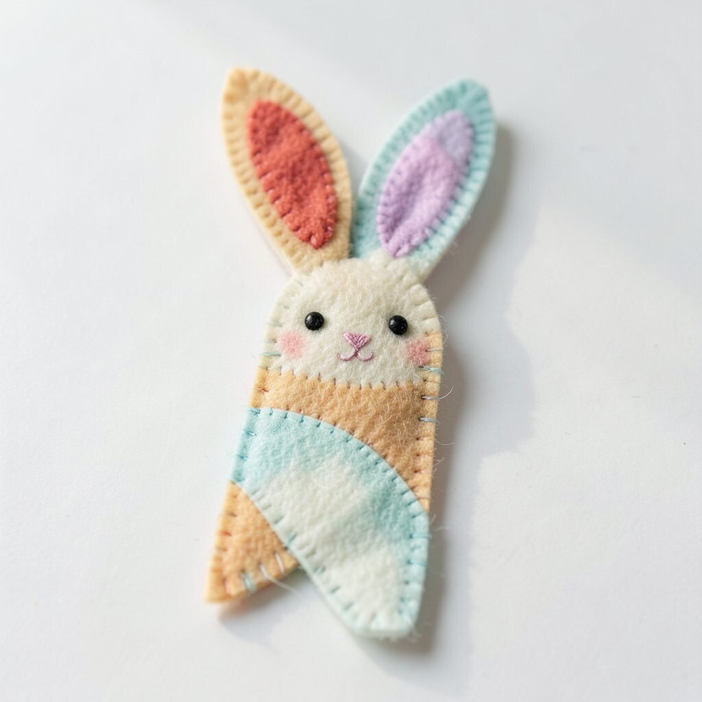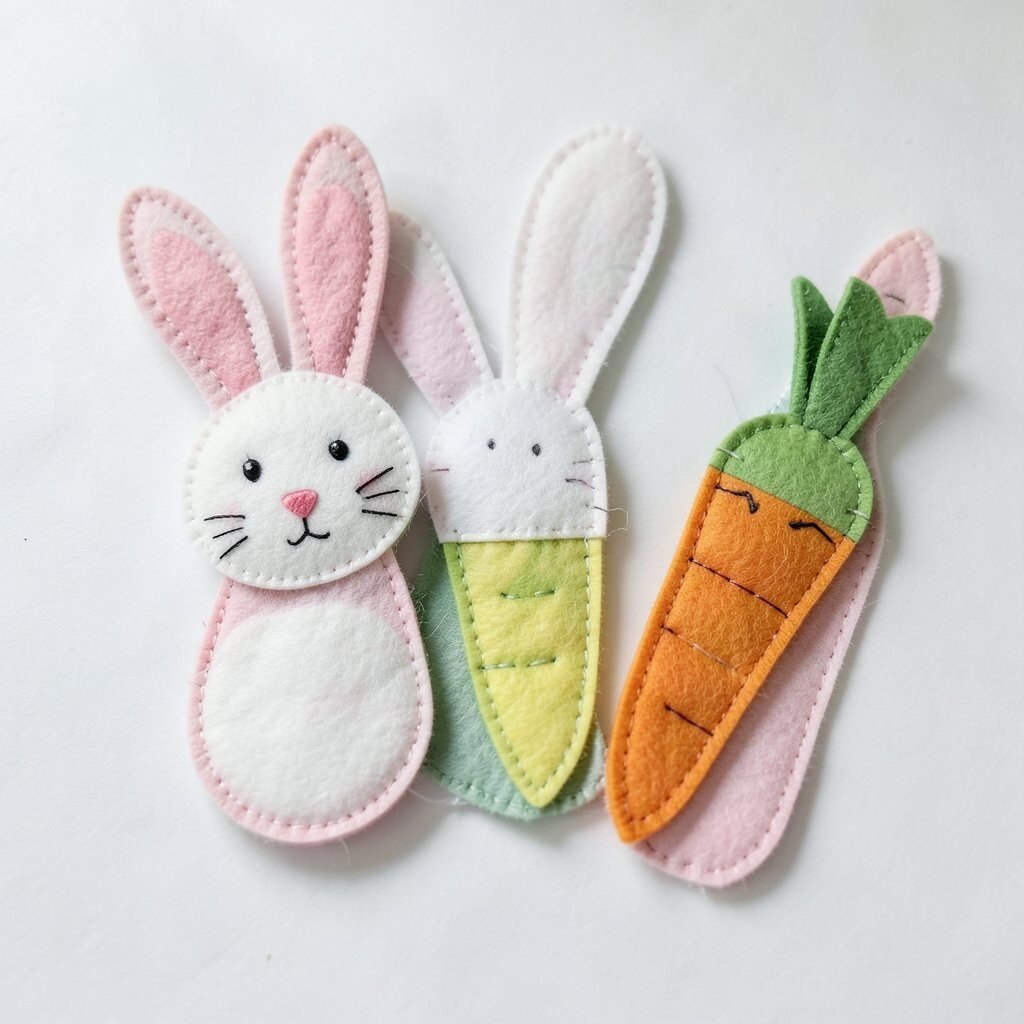 The bunny can peek over the page while the carrot hangs below, creating a cute scene. Soft pastel felt makes the set gentle and friendly, while bright orange adds a happy pop. Since both shapes are small, the project stays budget-friendly.