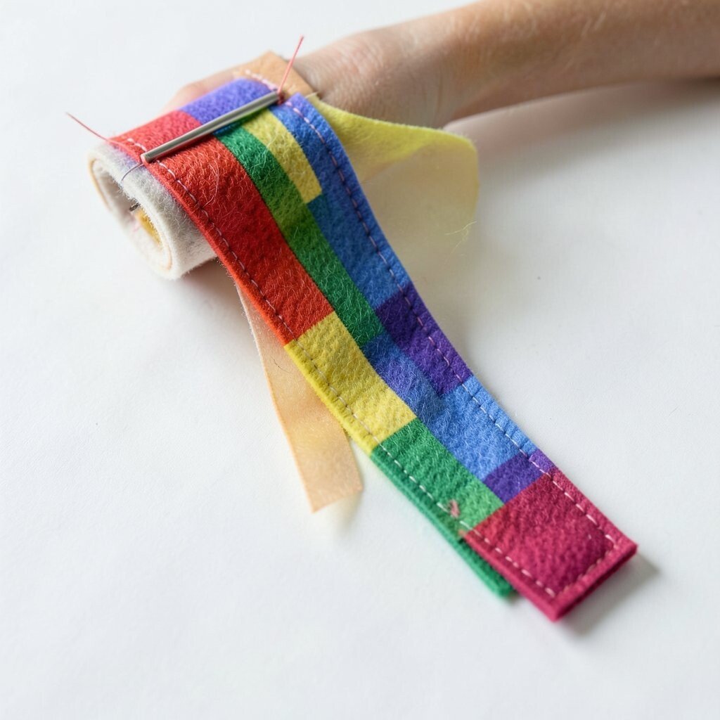 This design works well for kids, teachers, or anyone who loves bold color. You can sew the strips in neat rows or let them overlap for a more freeform look. It is easy on the wallet because small felt pieces are enough for the whole project.