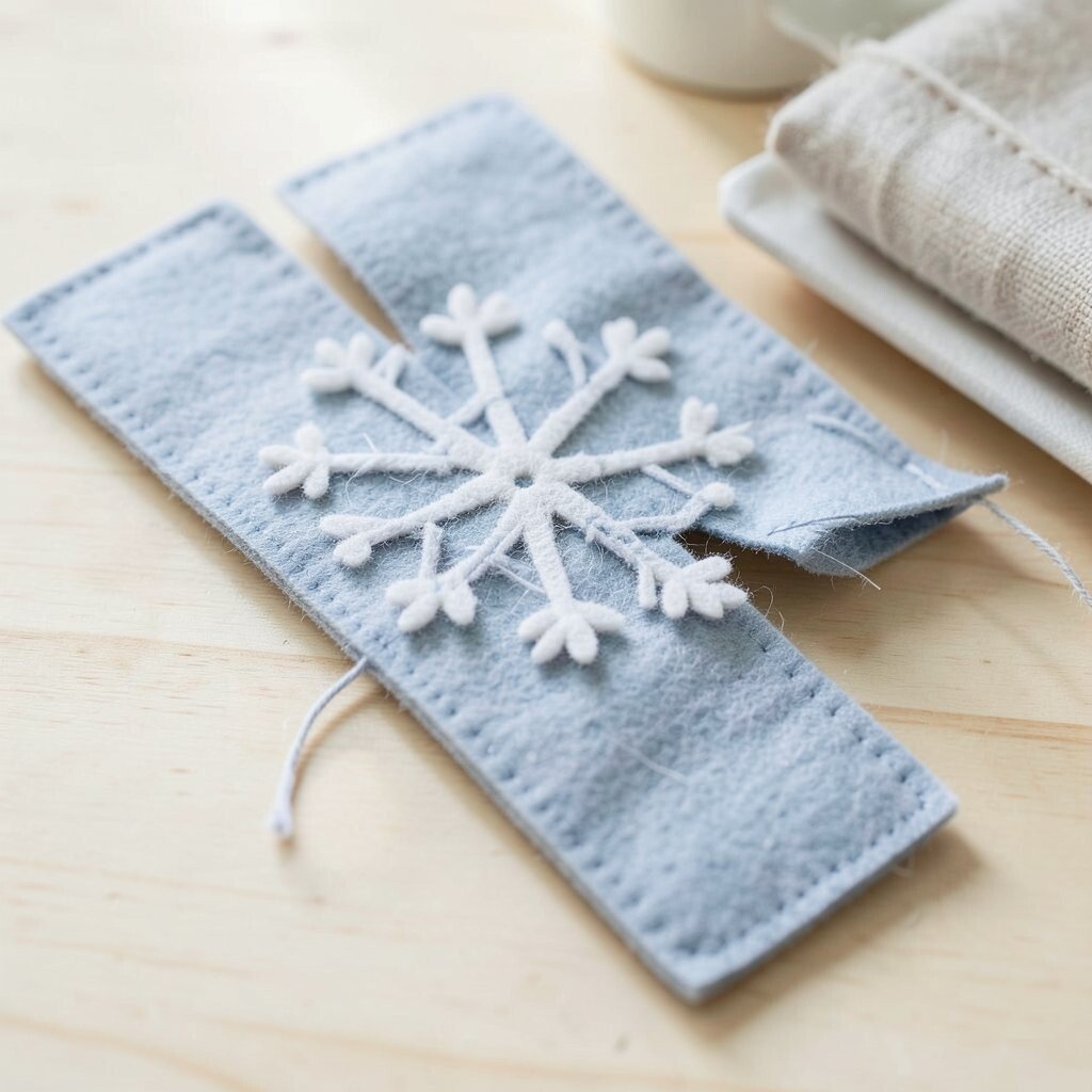 Use simple cut lines or stitched details to create the snowflake pattern. This project is easy to make and does not require much material, which helps keep it affordable. It is a nice seasonal craft for winter gifts and holiday markets.