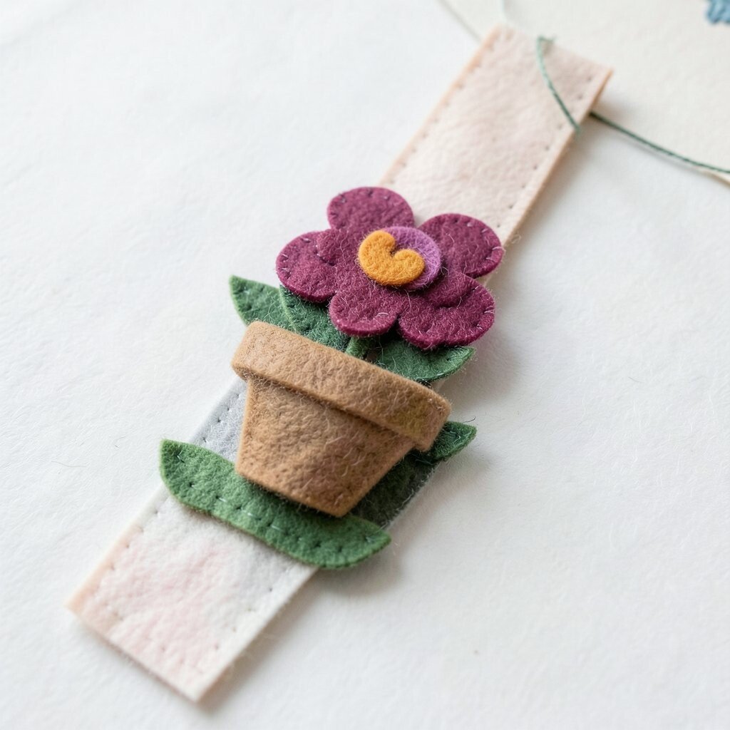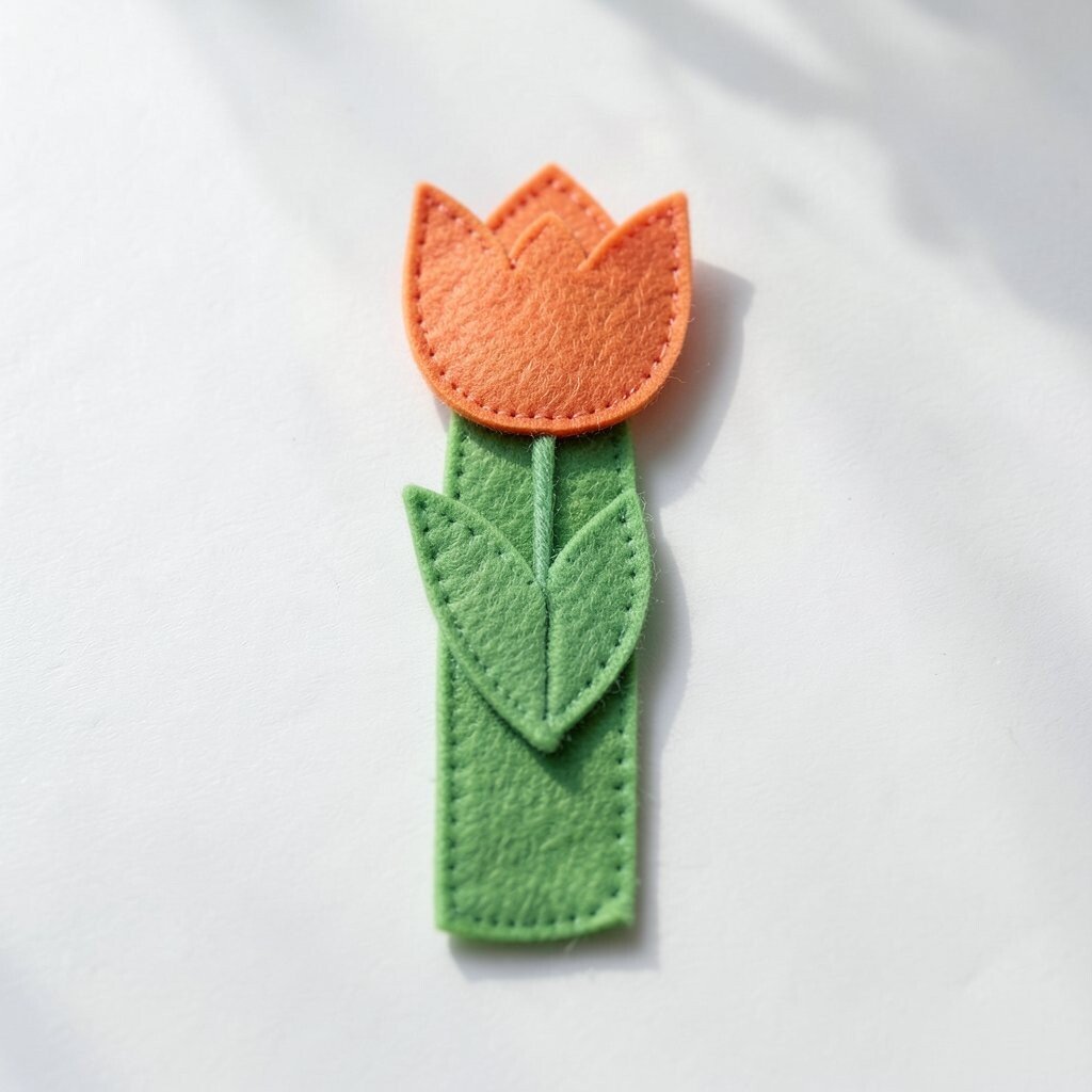 Try stitching the stem with green thread for a clean finish. A tiny leaf or embroidered name can make it feel more personal. Floral bookmarks are always appealing because they feel bright, calm, and handmade.