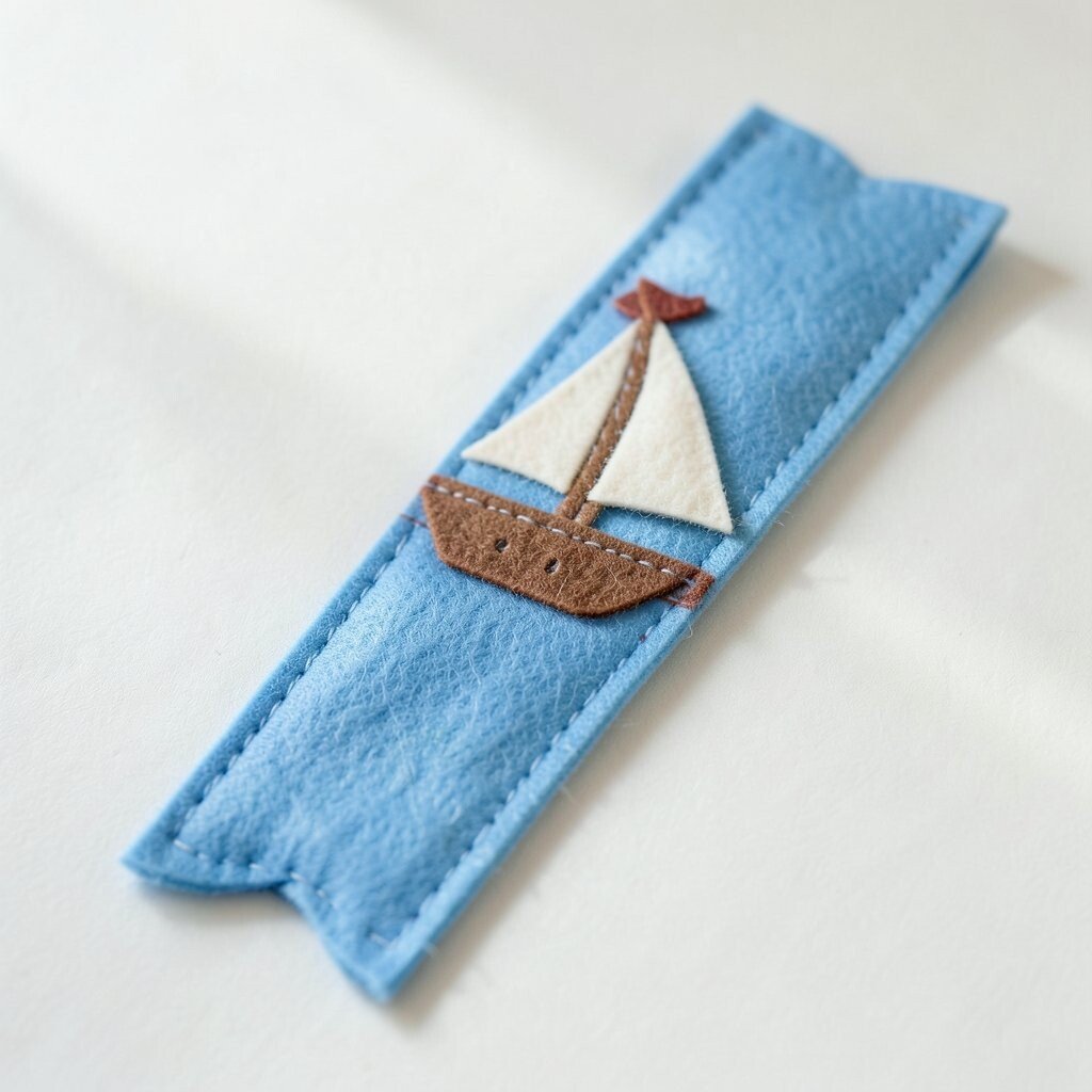 A sailboat bookmark brings a fresh, breezy feeling to a book. The triangle sail and simple hull create a clean shape that looks neat on the page.
