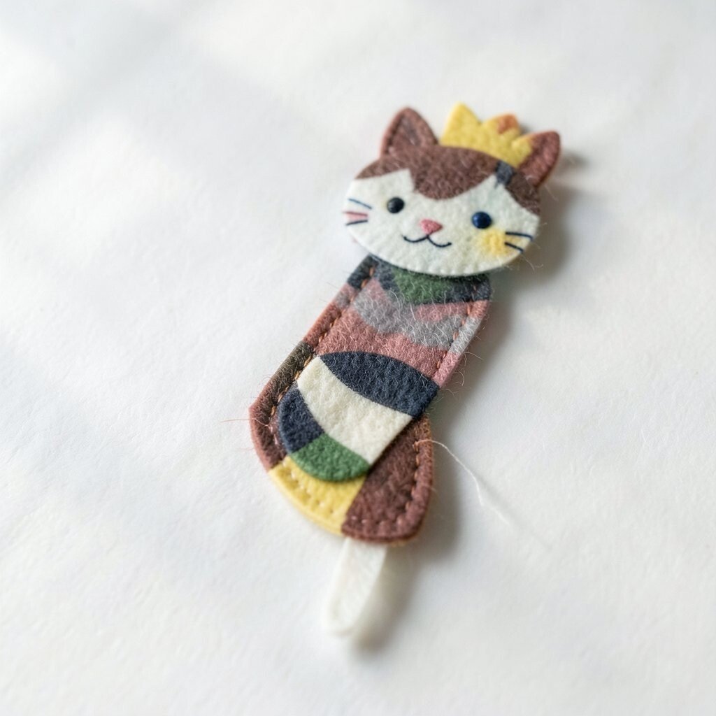 Choose black, orange, white, or striped felt to match a favorite pet. A stitched face can stay simple or get extra details like whiskers and a tiny nose. This project uses very little material, so it is a smart pick for low-cost crafting.