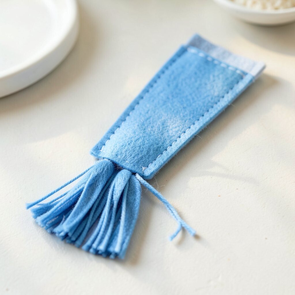 Choose one bold color or mix several shades for a layered look. The felt top can stay simple with a circle, square, or leaf shape. This idea is affordable because the tassel can be made from thread or yarn leftovers.