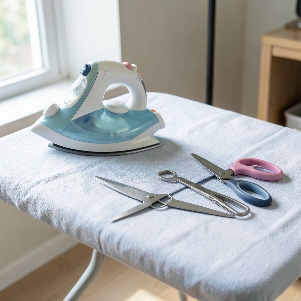 Pressing your fabric is crucial for a polished look. An iron and board help you achieve crisp seams and smooth fabric.