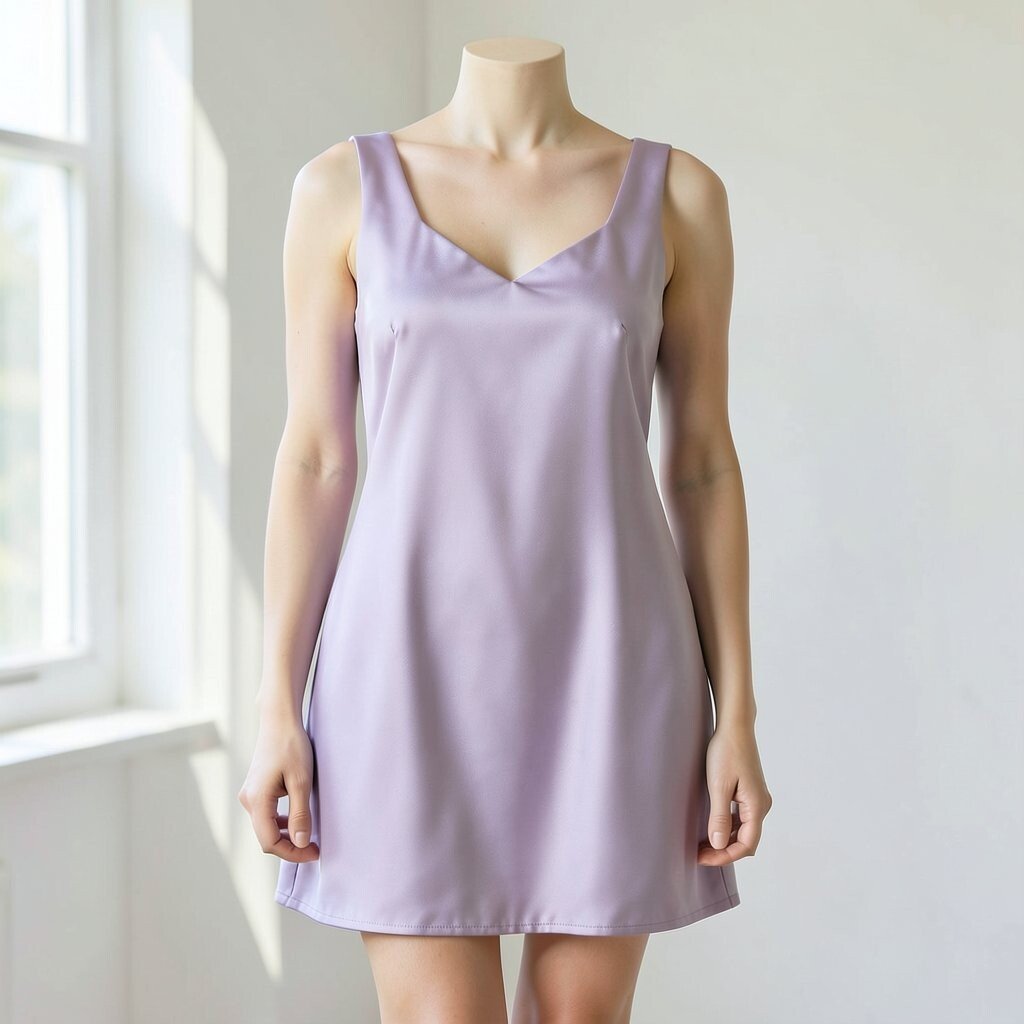 Lavender is a calming and serene color. A silk mini dress in this shade is ideal for spring and summer.