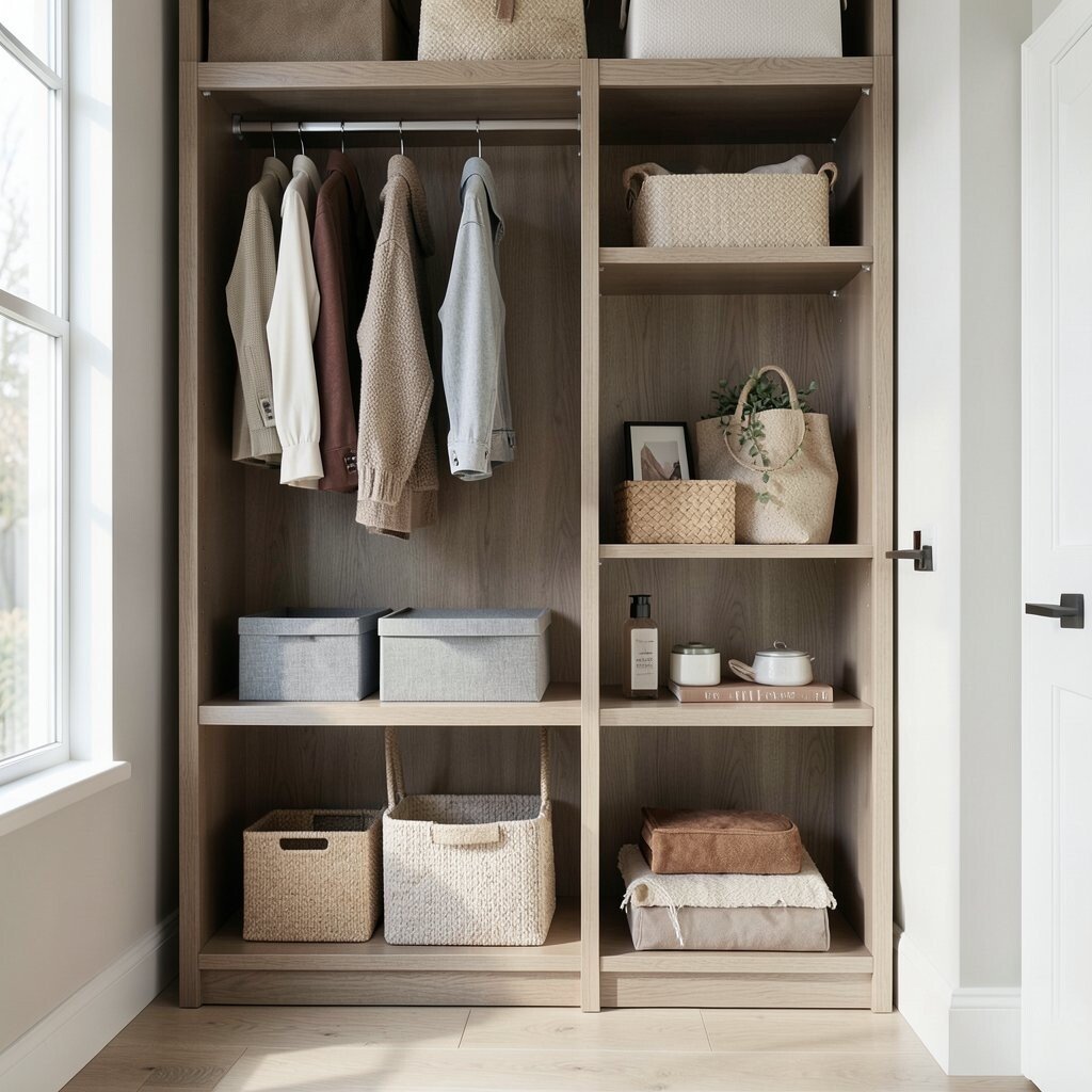 Opt for neutral colors or wood finishes for a sophisticated touch. Personalize with decorative knobs and hangers. Every morning will feel like shopping in your closet.
