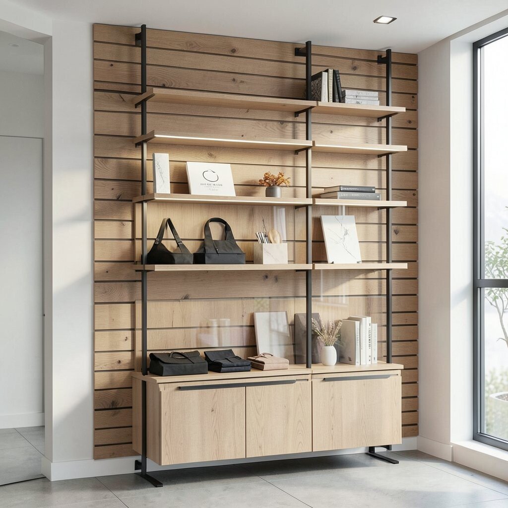 Your closet can look like a boutique with the right setup. Slat wall panels offer a stylish way to display your favorite pieces.