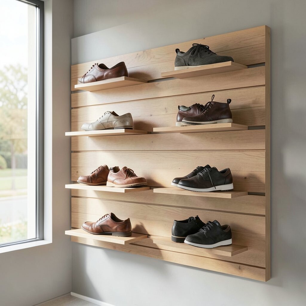 Show off your shoe collection with slat wall panels. They provide a chic way to store and display footwear.