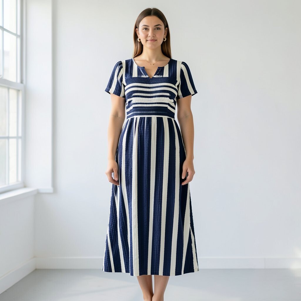 Striking and modern, a striped smocked maxi dress brings a fresh twist to your collection. It’s perfect for making a stylish statement without effort.