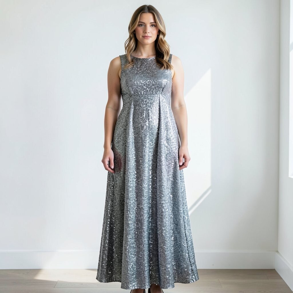 This dress is perfect for those who love a bit of glamor in their wardrobe. The metallic trend is popular on runways, making it a fashionable choice. It’s a splurge-worthy piece that adds sparkle to any occasion.