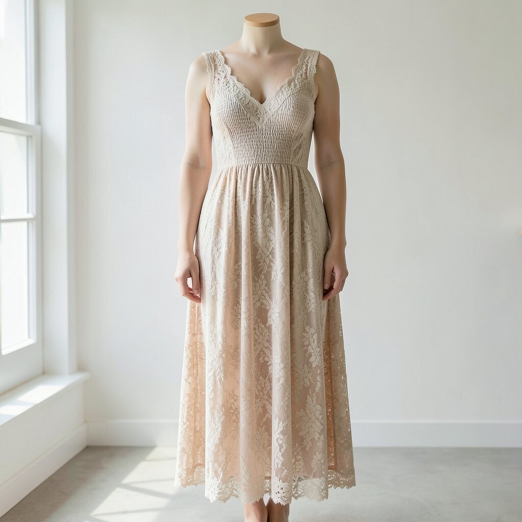 Lace detailing adds a touch of romance to a smocked maxi dress, making it ideal for date nights or weddings. It exudes an aura of elegance and femininity.
