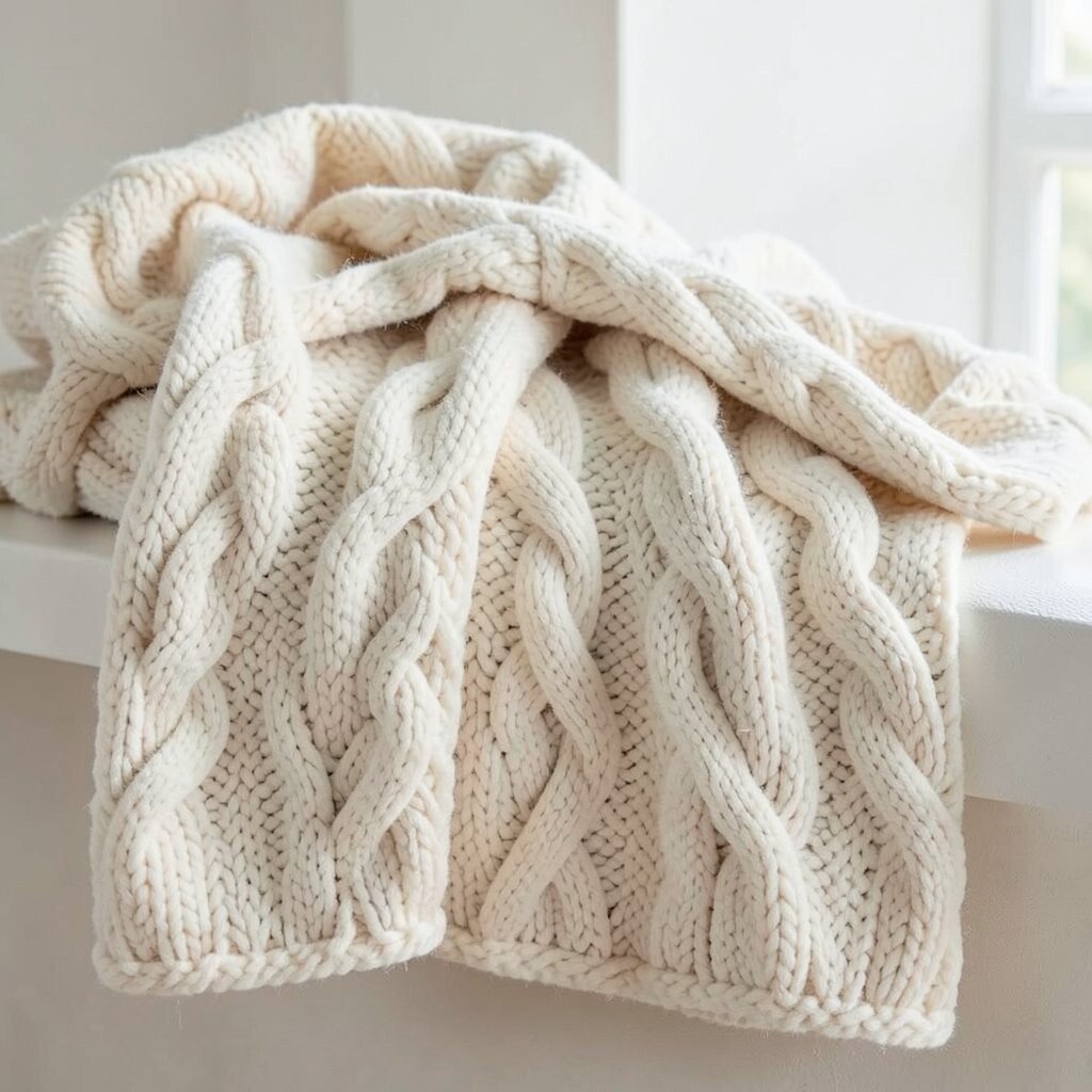 Cable knit throws bring a touch of nostalgia, reminding you of grandma’s handmade quilts. Their chunky knit adds a rustic charm.