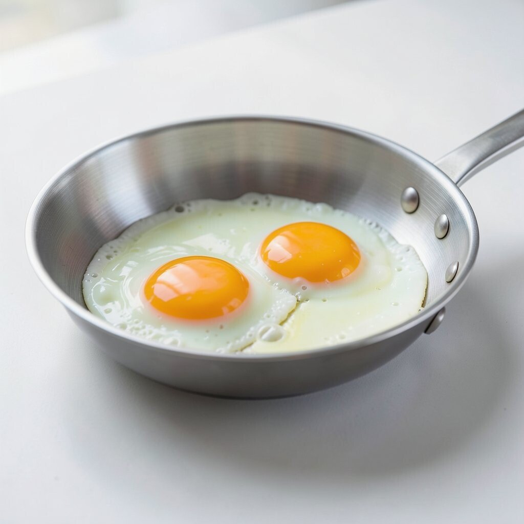 Poaching eggs in a stainless steel pan is a simple way to achieve silky, tender eggs. The pan’s surface helps maintain the perfect poaching temperature.
