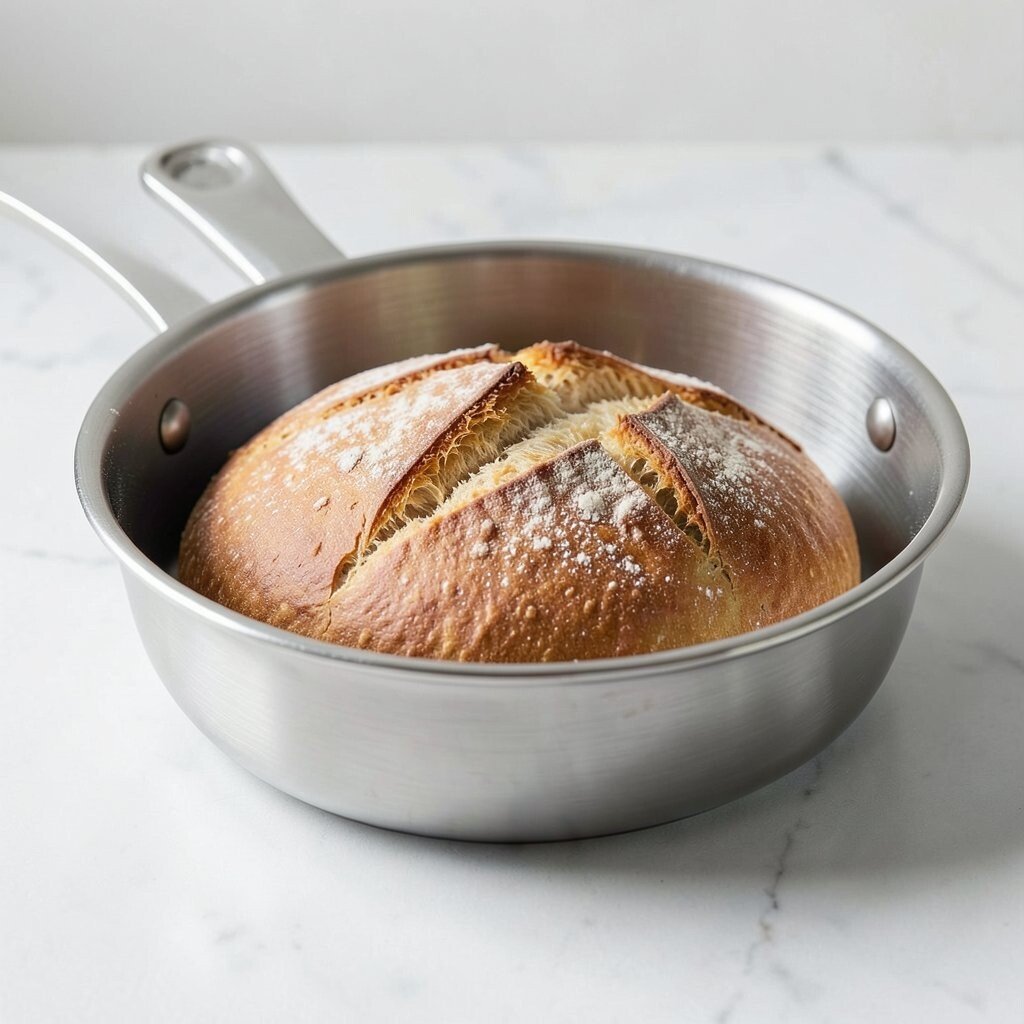 Baking bread in a stainless steel pan might sound unconventional, but it yields fantastic results. The pan’s heat retention creates a perfect crust.