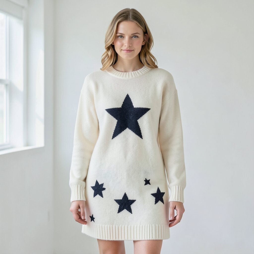 Try a belt to give it shape if the fit feels loose. A sweater dress with stitched stars or tiny embroidered stars can also feel more special than a plain printed version.