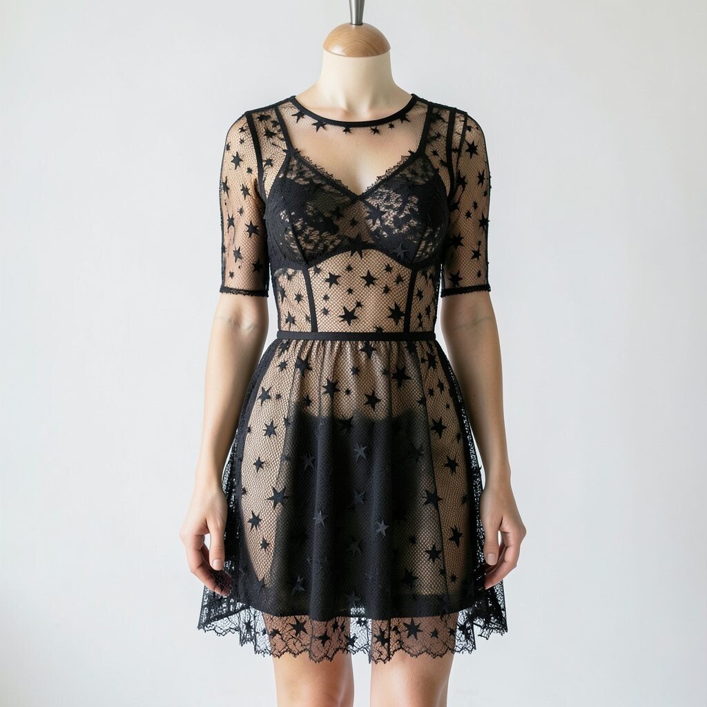 A black mesh star dress looks edgy and light at the same time. Tiny star details on sheer fabric create a soft sparkle that catches the eye.