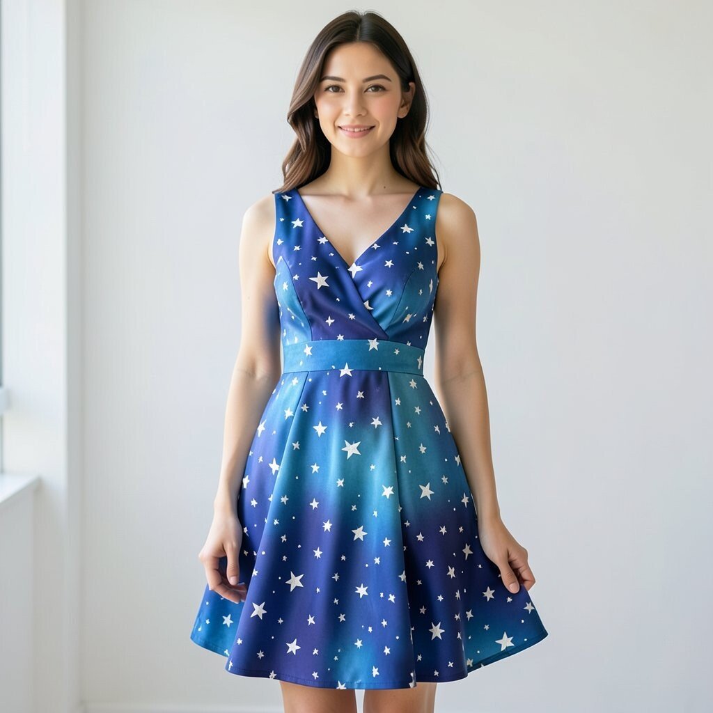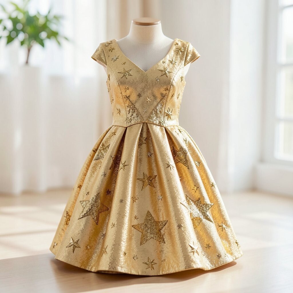 To make it more personal, choose star glitter on the bodice or tiny stars on the skirt. A fitted top and fuller bottom can help the dress feel balanced and easy to move in.