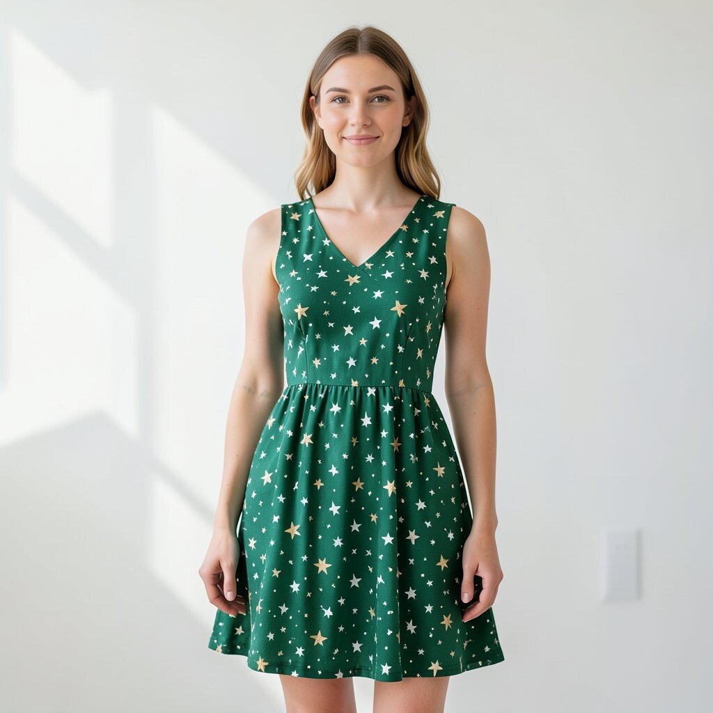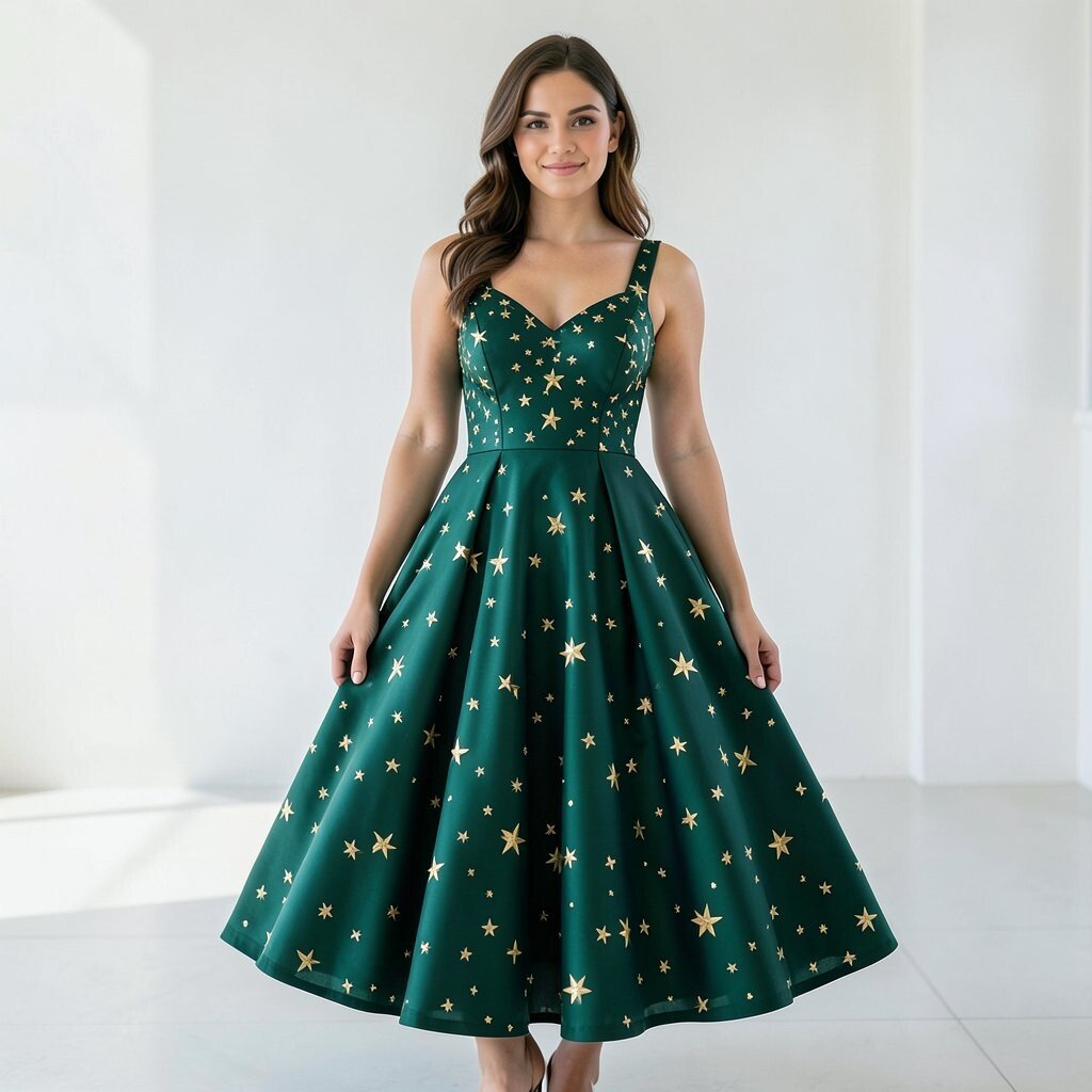 A forest green star fit-and-flare dress feels classic and cheerful at once. The fitted top and flared skirt make a nice shape that is easy to love.
