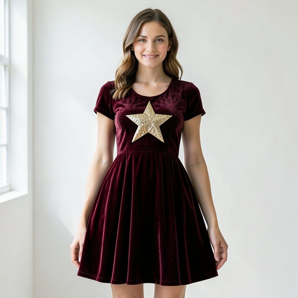Try gold jewelry for a classic touch, or add dark boots for a more modern edge. If you want to save money, look for a shorter dress with fewer star accents, since it can still feel fancy with the right accessories.