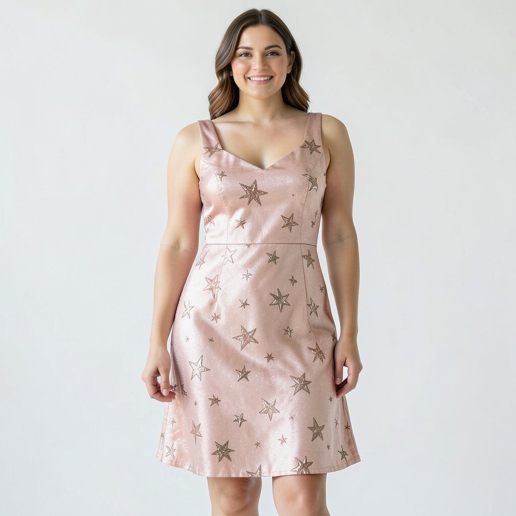 A rose gold star slip dress has a soft shine that feels sweet and modern. The smooth fabric and thin straps give it a light, easy look.