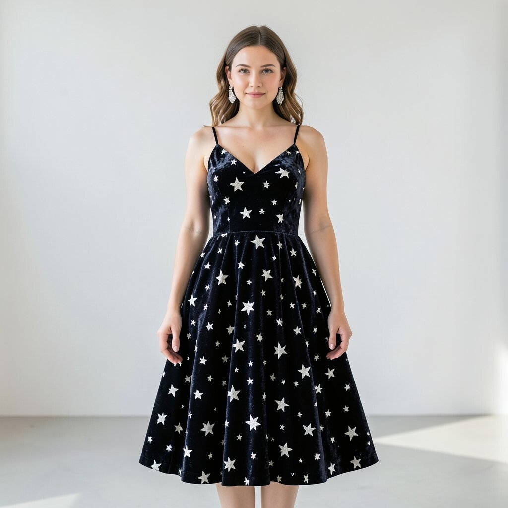 A midnight velvet star dress gives off a rich, dreamy glow that feels perfect for a Capricorn mood. The deep color and soft shine make it look elegant right away.