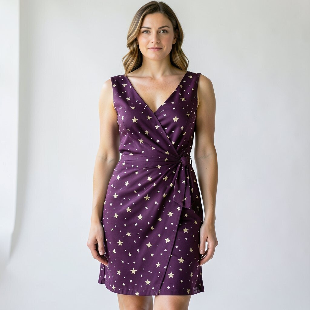 A plum star wrap dress is flattering, smart, and easy to style. The wrap shape helps define the waist, while the plum color gives a rich, elegant look.