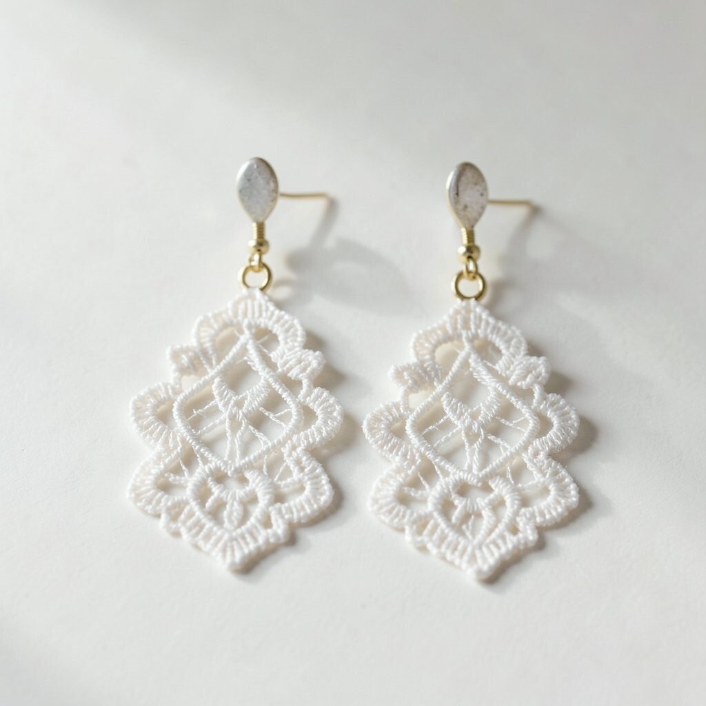 Lace earrings offer a delicate and feminine touch to your style. The intricate patterns mimic the beauty of lace fabric, creating a romantic effect.