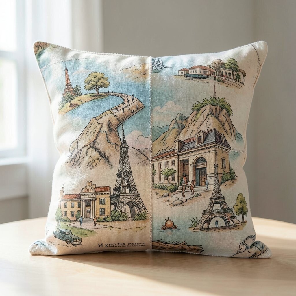 This cushion adds a touch of wanderlust to your home. It’s perfect for travel enthusiasts.