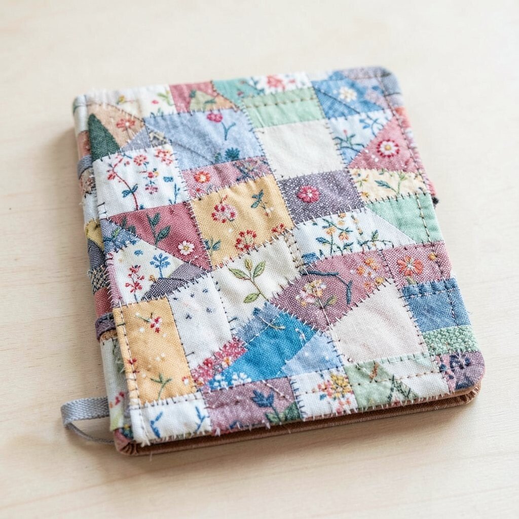 Combine fabric and thread to create a patchwork cover for your journal. Each patch can represent a different memory or theme.