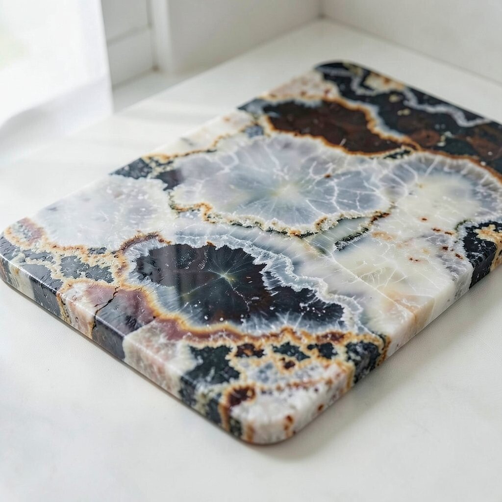 To complement the blue tones of the agate, consider using matching accessories or accent colors in your bathroom decor. This can create a harmonious and visually appealing space.