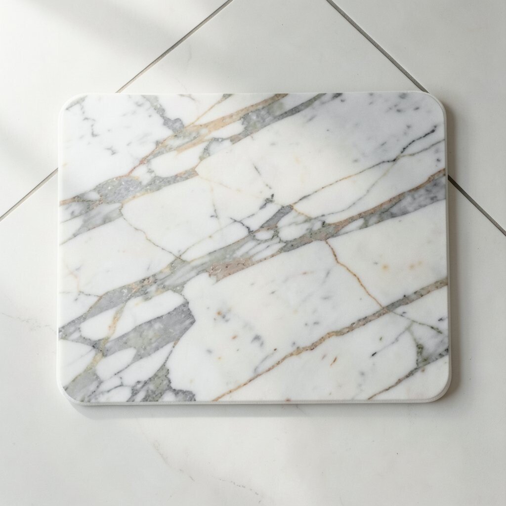 Calacatta marble bath mats are synonymous with luxury and elegance. Their distinctive white background and bold veining patterns are instantly recognizable.