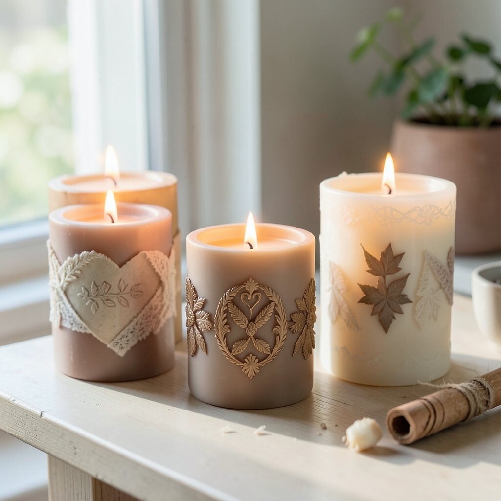Create an inviting atmosphere with homemade scented candles. Melt wax, add your favorite essential oils, and pour into molds.