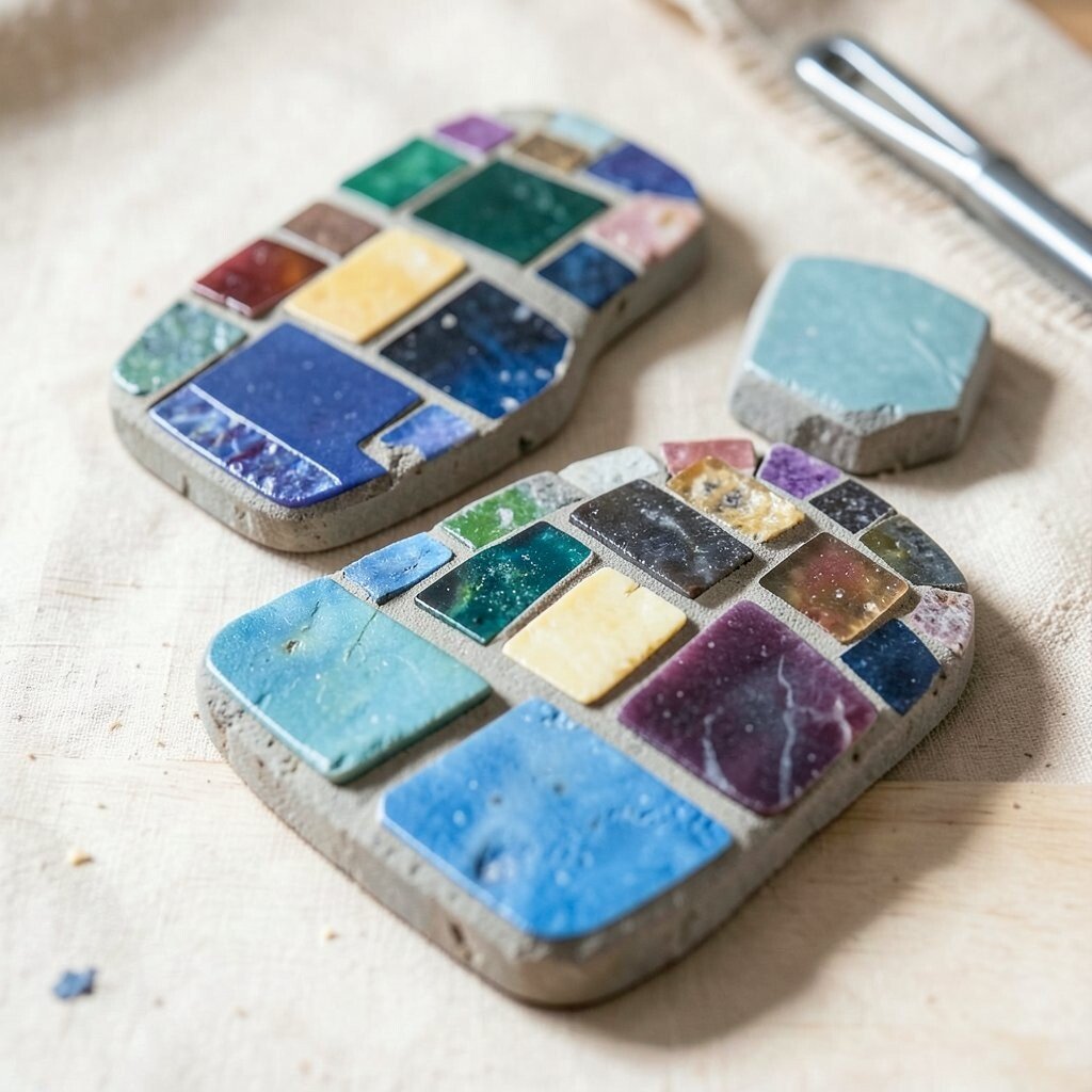 Craft your own mosaic stepping stones using broken tiles or glass pieces. Arrange them in patterns and set them in cement.
