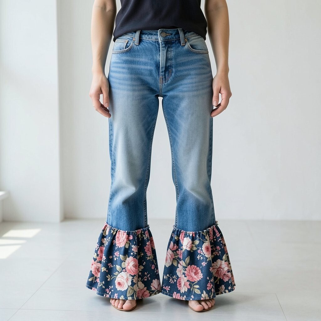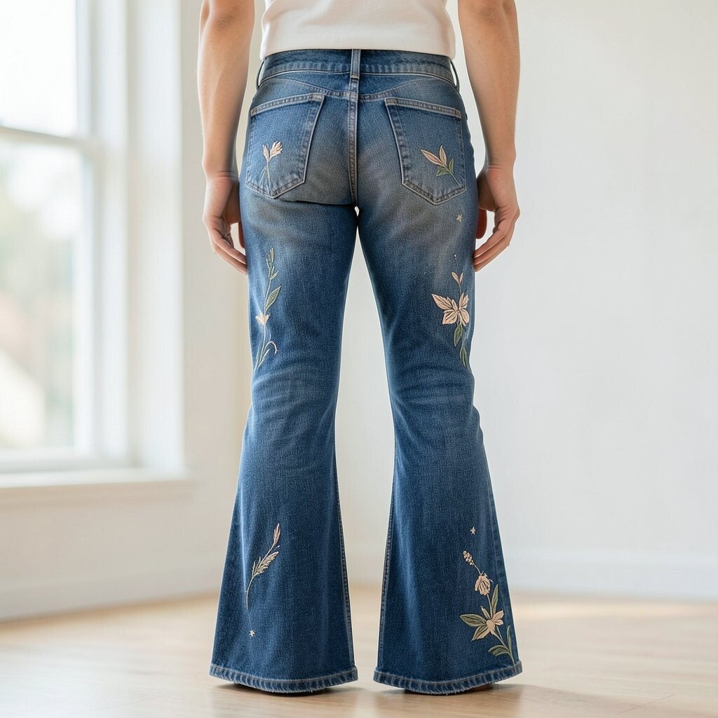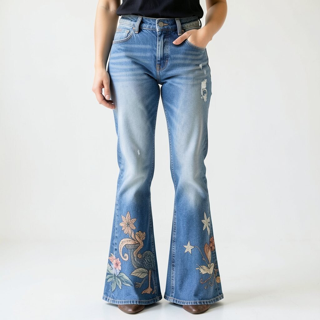 Floral flares bring a touch of femininity and grace. They’re perfect for spring and summer, adding a romantic vibe to your outfit.